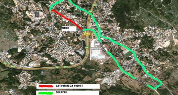 dvosmjerno južnim kolničkim trakom. Sjeverni kolnički trak bit će zatvoren zbog