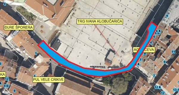 Foto: Prikaz zone zahvata na sanaciji kolnika Agatićevoj ulici.