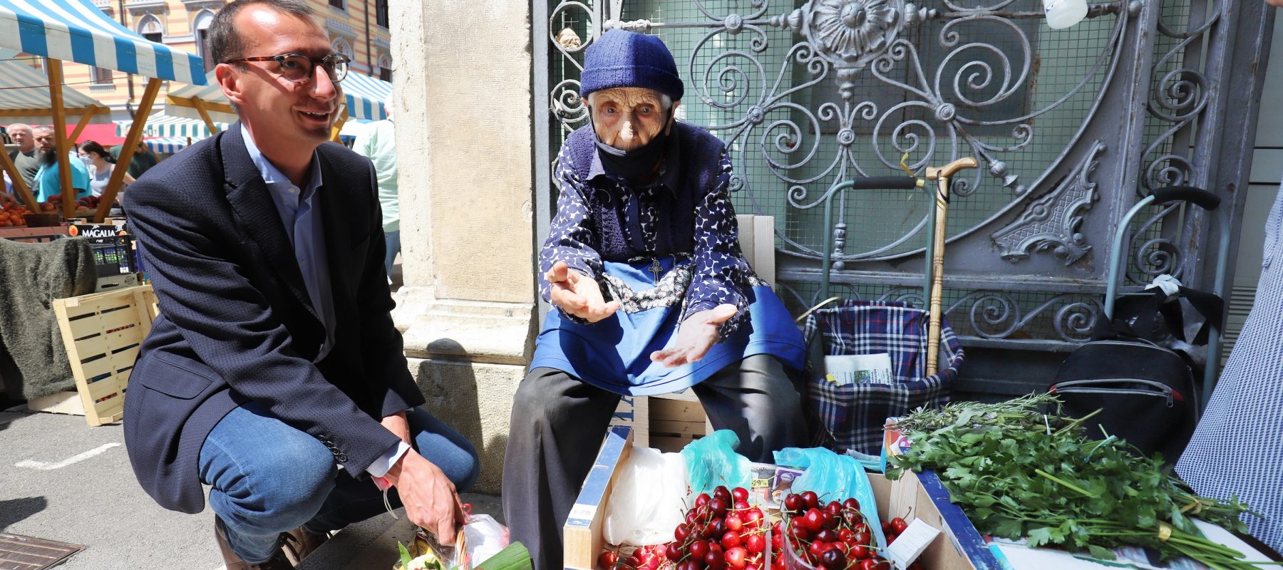 Riječki gradonačelnik Marko Filipović uručio je baki Kati prigodni poklon zadržavši se u kraćem razgovoru na temu zdravlja i radosti života, jer vjernih kupaca bake Kate je bilo i za vrijeme gradonačelnikova posjeta.