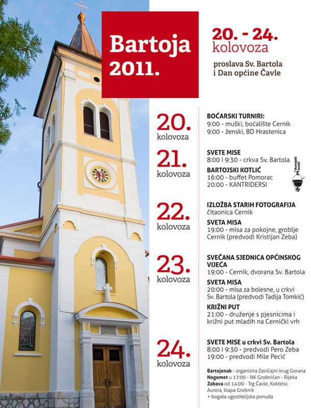 19:00 – Cernik – dvorana crkve Sv. Bartola