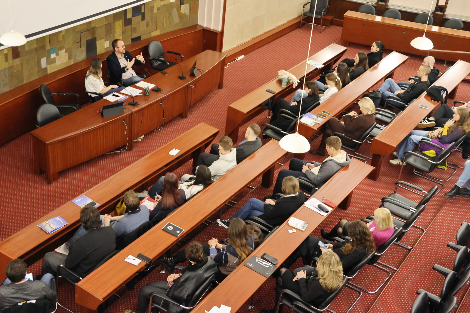 Nakon premještanja u Gradsku vijećnicu, predsjednik Gradskog vijeća Grada Rijeke Robert Kurelić predstavio je rad i djelokrug Gradskog vijeća te mogućnosti uključivanja mladih u njegov rad.