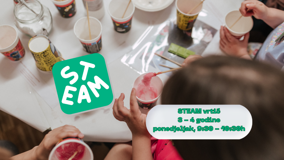 Vrtićarce (3 – 4 godine) čeka zabavna radionica STEAM vrtić na kojoj će polaznici kroz igru i kreativne aktivnosti uroniti u svijet boja, oblika, brojeva i prirodnih pojava! Predškolci (5 – 6 godina) mogu sudjelovati na radionici STEAM vrtić gdje će imati priliku upoznati se s veselim robotićima Cubetto i BeeBot, te naučiti kako ih programirati na zabavan i jednostavan način, a osim toga sudjelovat će i u raznim jednostavnim kemijskim eksperimentima i rješavati matematičke zadatke.