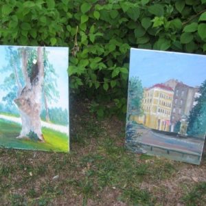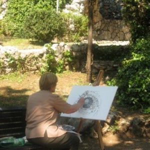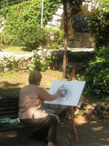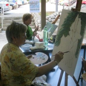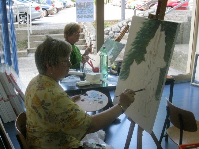 Čim je sunce rastjeralo oblake, kolonija se uputila u park Mlaka, gdje su građani imali priliku iz prve ruke pogledati kako nastaju slike na temu “Motivi s Mlake” rađene tehnikom akril na platnu.