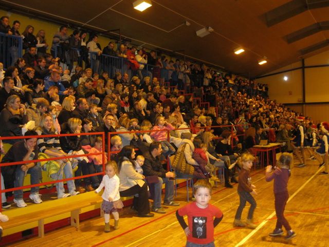 Doček Djeda Božićnjaka organiziran je u sportskoj dvorani O.Š. “Srdoči”. Dvorana je bila gotovo pretijesna za 180 dječice predškolske dobi koja su došla u pratnji svojih roditelja, baka i djedova. Prekrasan prigodni program uz pjesme i recitacije