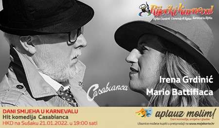 Već sutra, 21. siječnja u 19 sati predstava “Casabianca” autorskog i izvođačkog dvojca Irene Grdinić i Marija Lipovšeka Battifiace prikazat će smiješnu stranu života tipičnog primorskog bračnog para, od 60-tih godina prošlog stoljeća do danas. Romansa i brak, djeca, komunizam i kapitalizam, partija pa stranke, samo su neke od tema s kojima će vas ovaj šarmantni par nasmijati do suza u ulogama Đurđe i Franka kroz svoje duhovite dijaloge na čakavskom dijalektu.