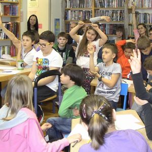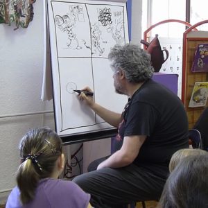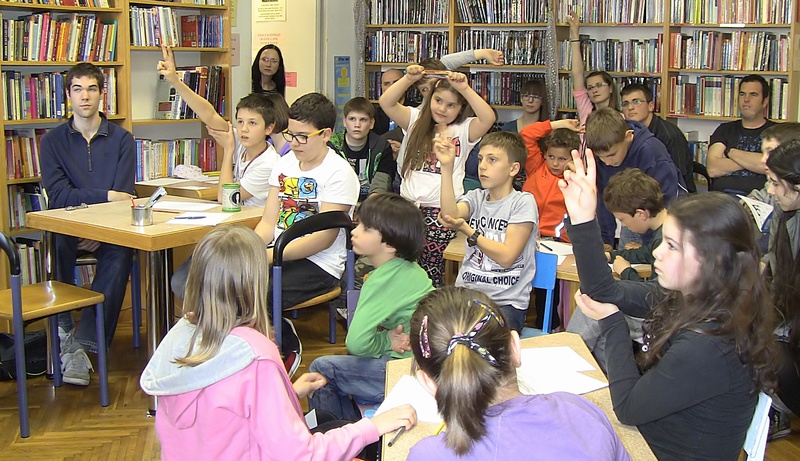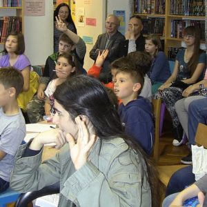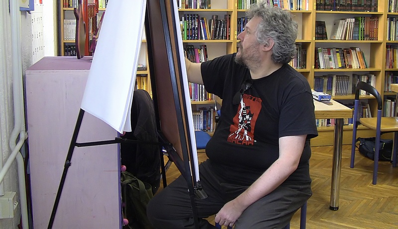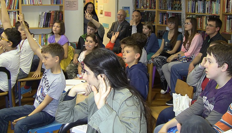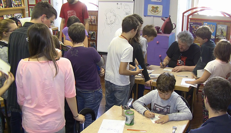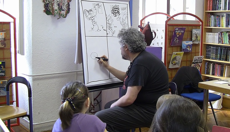 knjižnici na poklon pravi mali strip. Nakon toga odgovarao je na brojna pitanja