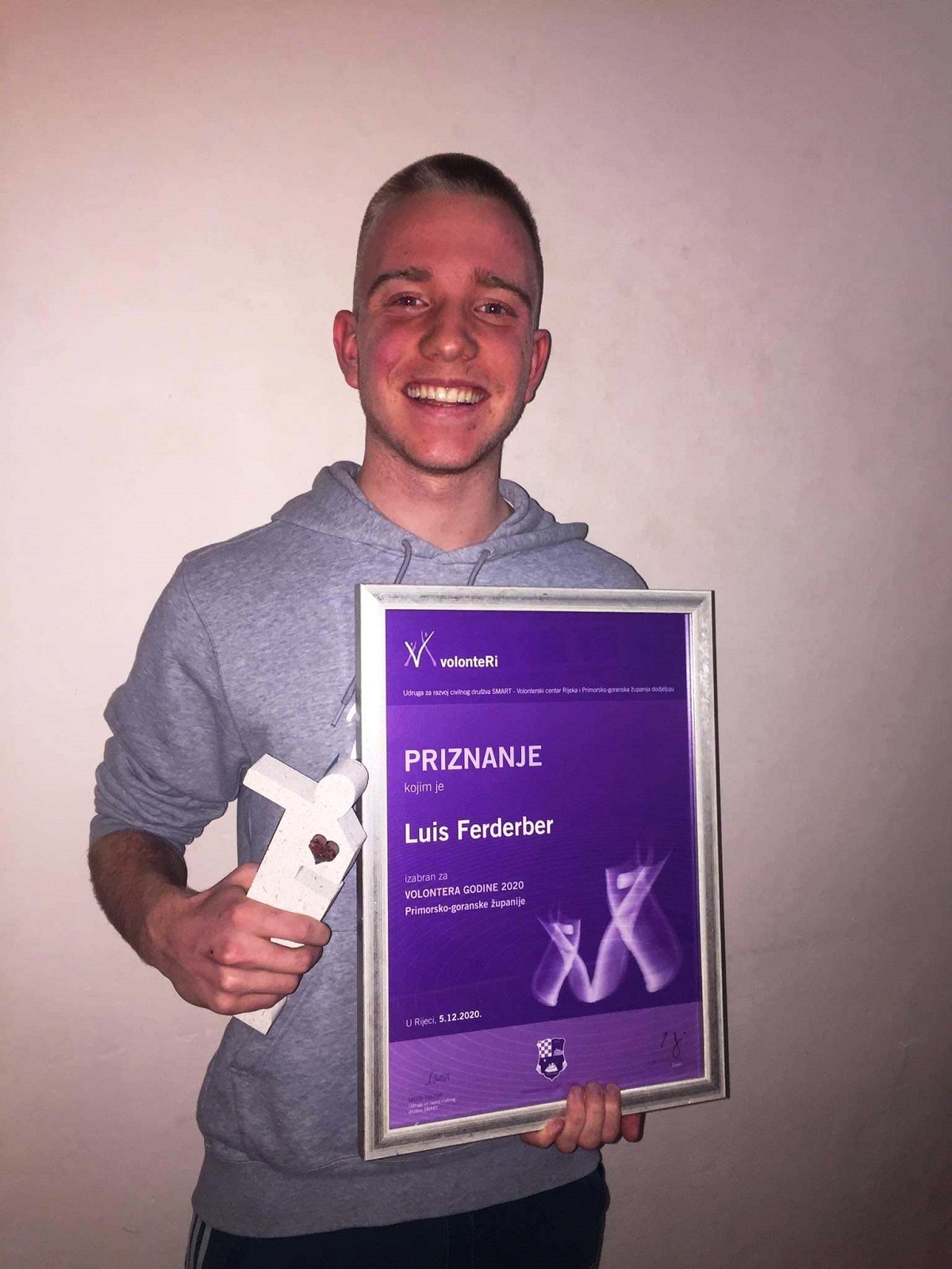 Udruga za razvoj civilnog društva SMART – Volonterski centar Rijeka, Primorsko-goranska županija i Grad Rijeka povodom 5.12., Međunarodnog dana volontera dodijelili su nagradu „Volonteri godine“ za 2020. godinu.