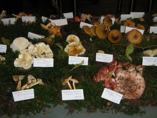 Na stolovima su se našle neke poznate i česte gljive, a naravno i neke koje nisu baš česte ili ih berači ne uočavaju. Poznate gljive kao amanita phalloides-zelena pupavka, amanita muscaria-muhara, amanita pantherina-panterova muhara itd. Spomenuli bi neke koje se rjeđe pojavljuju kao entoloma bloxamii-modra rudoliska, leccinum lepidum-crnikin djed, hygrocybe miniata, hygrocybe flavescens, lyophyllum loricatum-tvrdokožna sraštenica, pseudocraterellus sinuosus-ivanova lisičica, hygrophorus nemoreus-bukova puževica, hygrophorus hypotheius-borova vlažnoglavka itd. Od svih ubranih gljiva nabrojeno je 73 jestive vrste a druge su otrovne, nejestive, uvjetno jestive ili dvojbene delikatese. Najviše gljiva bilo je u rodu tricholoma-vitezovke.