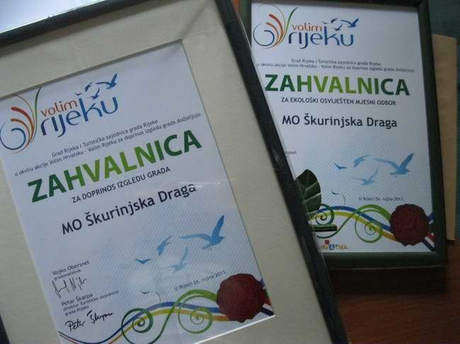 Ova priznanja stigla su nakon organizacije i provođenja ekološke akcije koncem mjeseca travnja ove godine na najugroženijem dijelu  Mjesnog odbora Škurinjska Draga, u naselju baraka u Ulici Mihačeva draga. Grad Rijeka i Turistička zajednica su kao nosioci ove akcije prepoznali i nagradili napore i doprinos Mjesnog odbora Škurinjska Draga da sredina u kojoj živimo bude čišća i ugodnija.