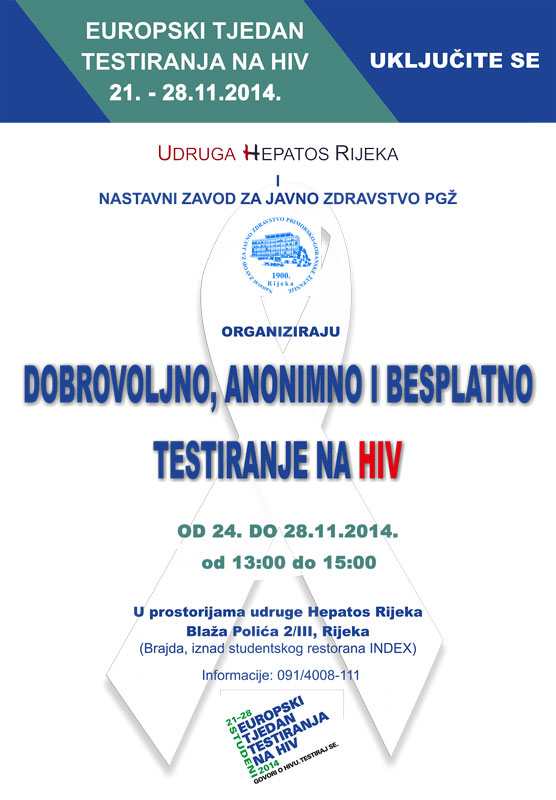 testiranje na HIV u prostoru udruge HEPATOS RIJEKA, Blaža Polića 2/III, od