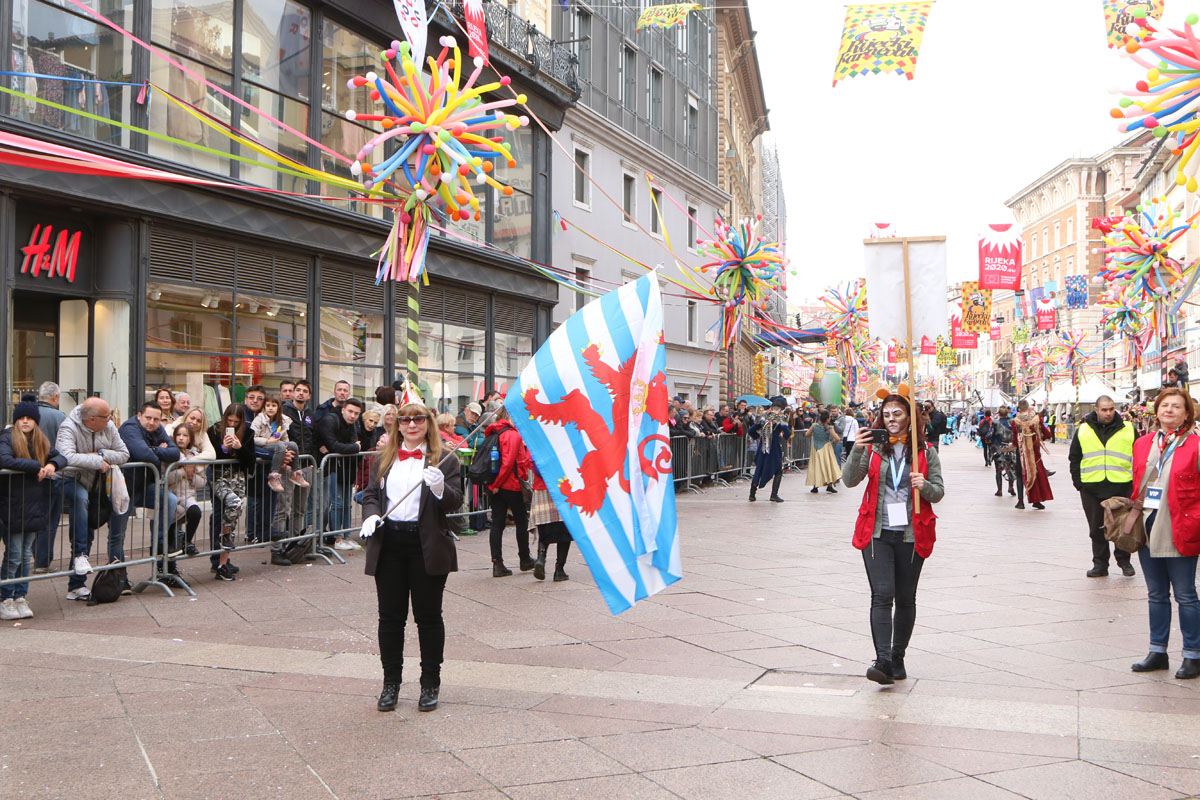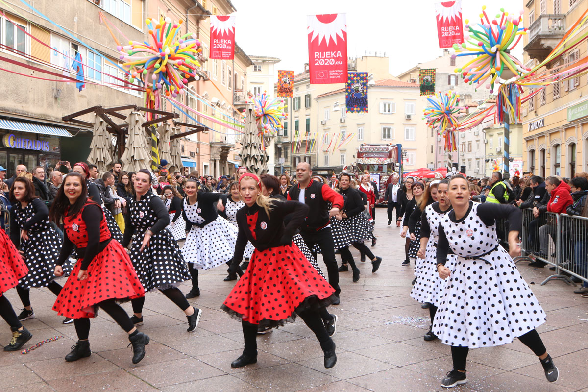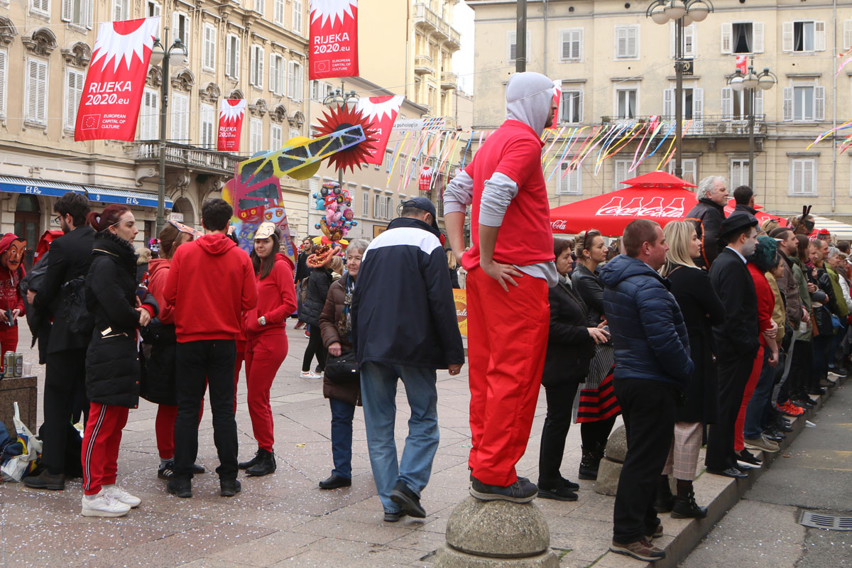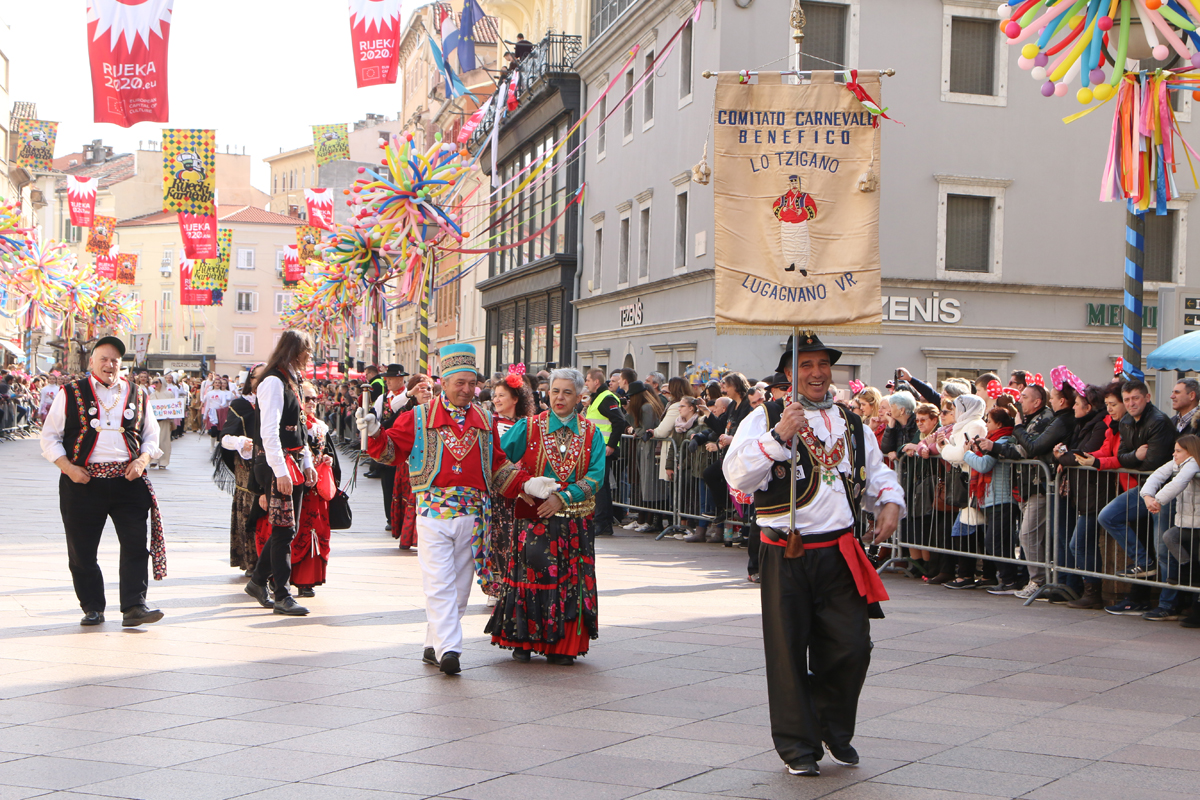Riječke ulice prepune su kako sudionika ovogodišnje Međunarodne karnevalske povorke, tako i brojnih gledatelja. Finale 37. riječkog karnevala ove godine obasjano je i crvenim EPK suncem, jer je povorku uveličala titula Rijeke – Europske prijestolnice kulture 2020. godine. U povorci je više od 11.000 maškara u 116 grupa, među kojima je 14 hrvatskih iz drugih županija i 24 skupine iz inozemstva.