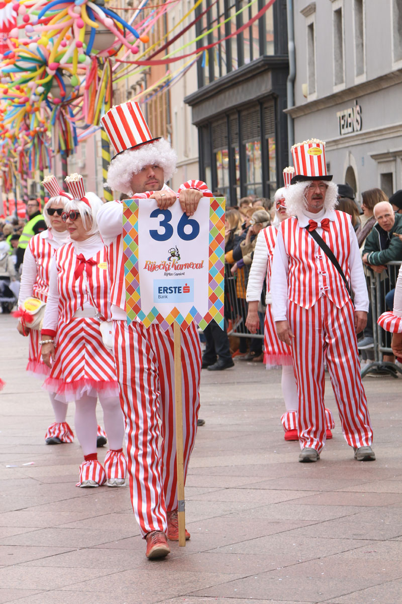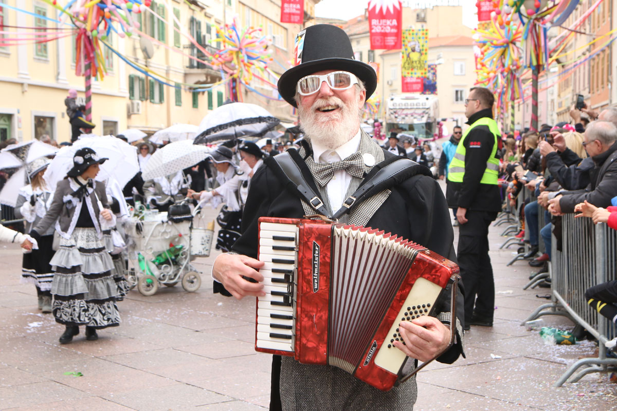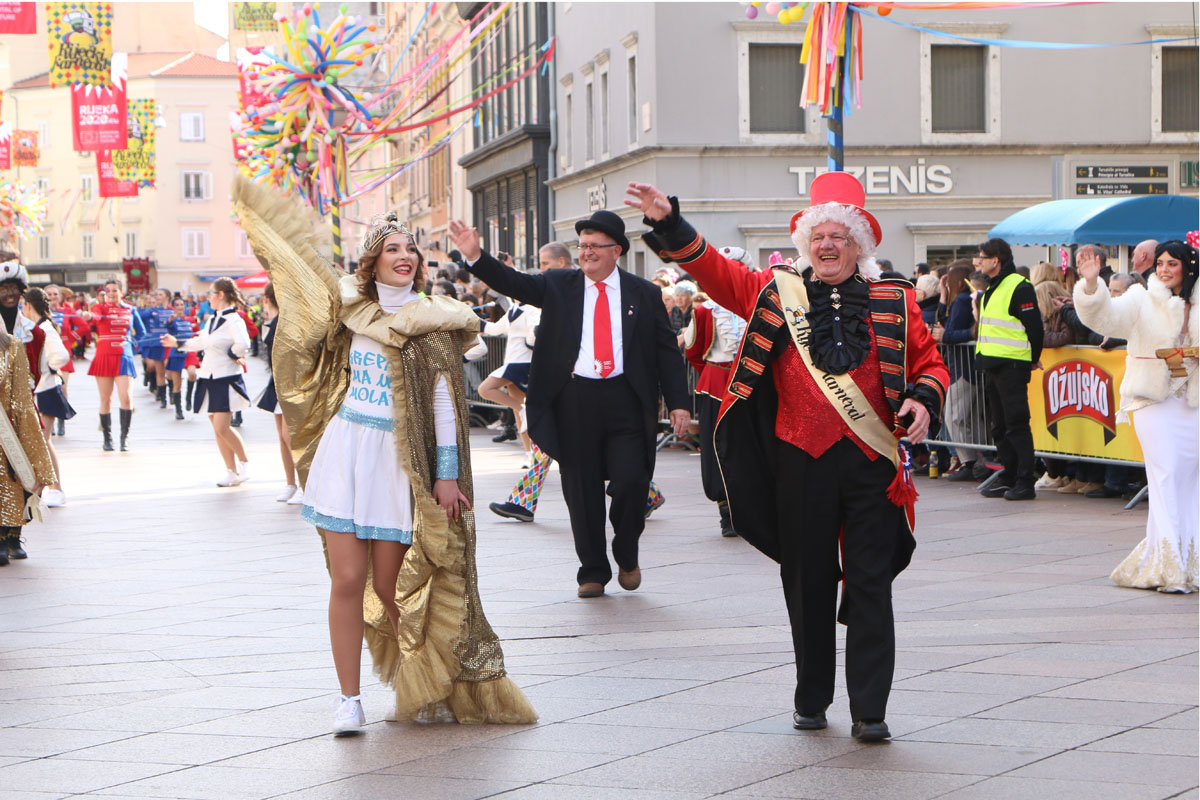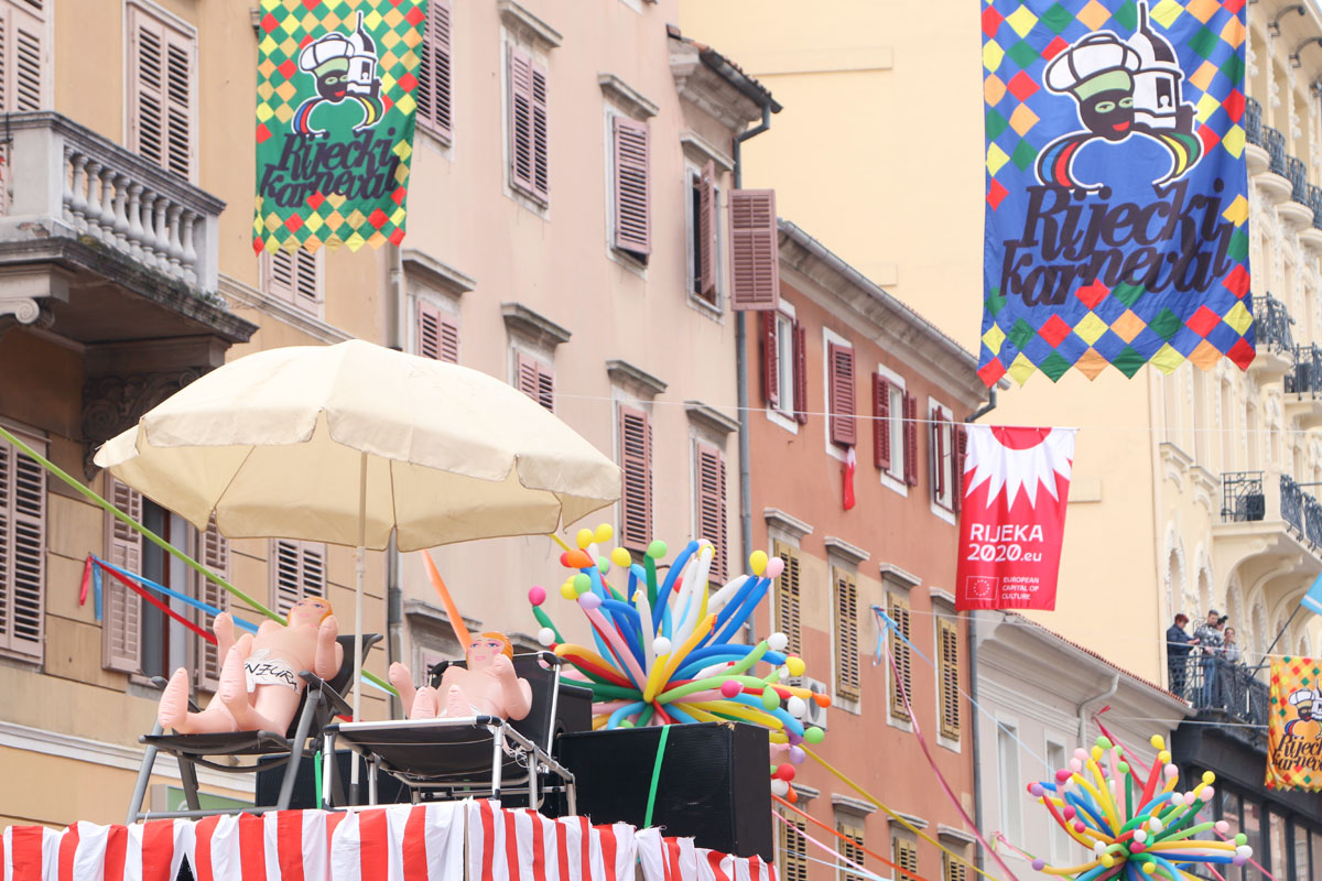 Riječke ulice prepune su kako sudionika ovogodišnje Međunarodne karnevalske povorke, tako i brojnih gledatelja. Finale 37. riječkog karnevala ove godine obasjano je i crvenim EPK suncem, jer je povorku uveličala titula Rijeke – Europske prijestolnice kulture 2020. godine. U povorci je više od 11.000 maškara u 116 grupa, među kojima je 14 hrvatskih iz drugih županija i 24 skupine iz inozemstva.