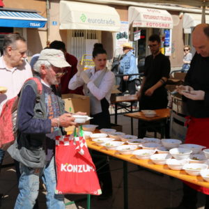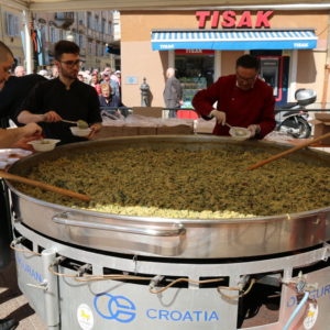 tortu. U podjeli torti građanima sudjeluju učenici Ugostiteljske škole iz