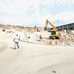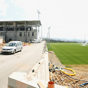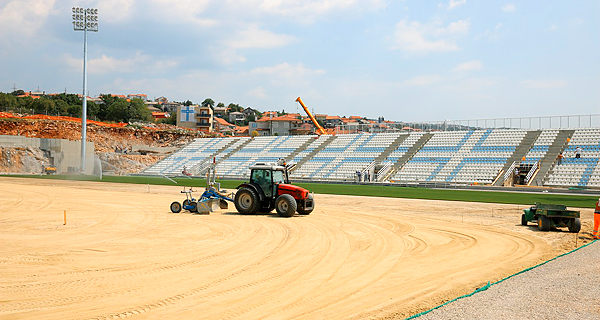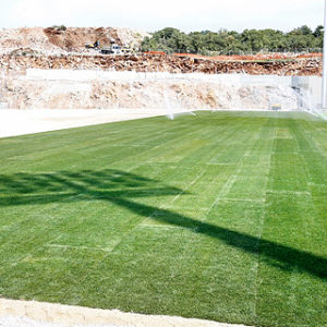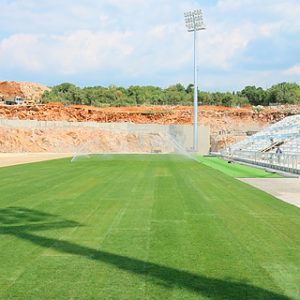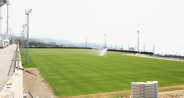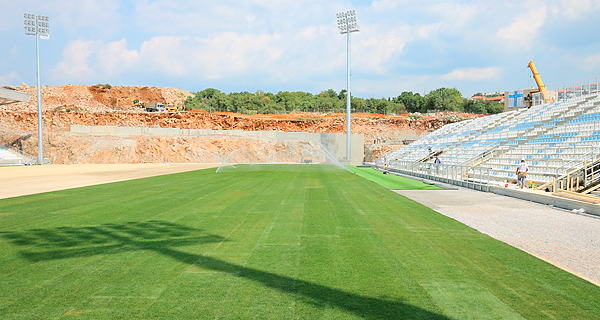 trava, koja se obilato zalijeva vodom, na drugoj strani stadiona pak, dovršava