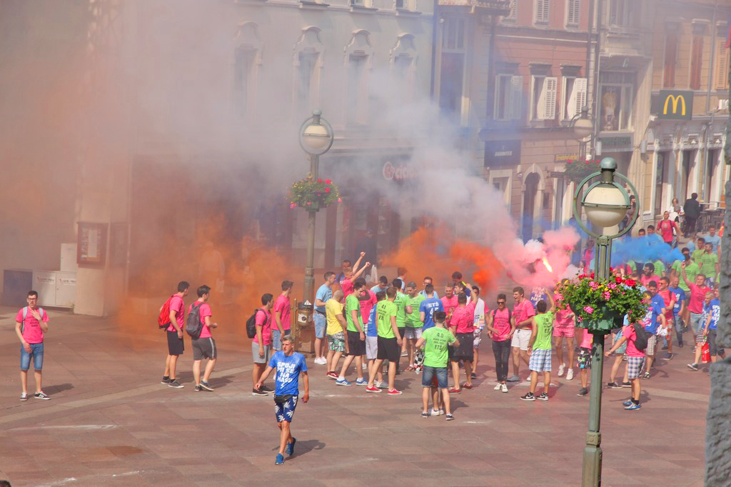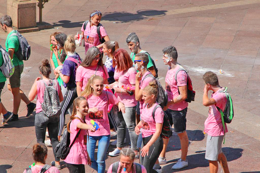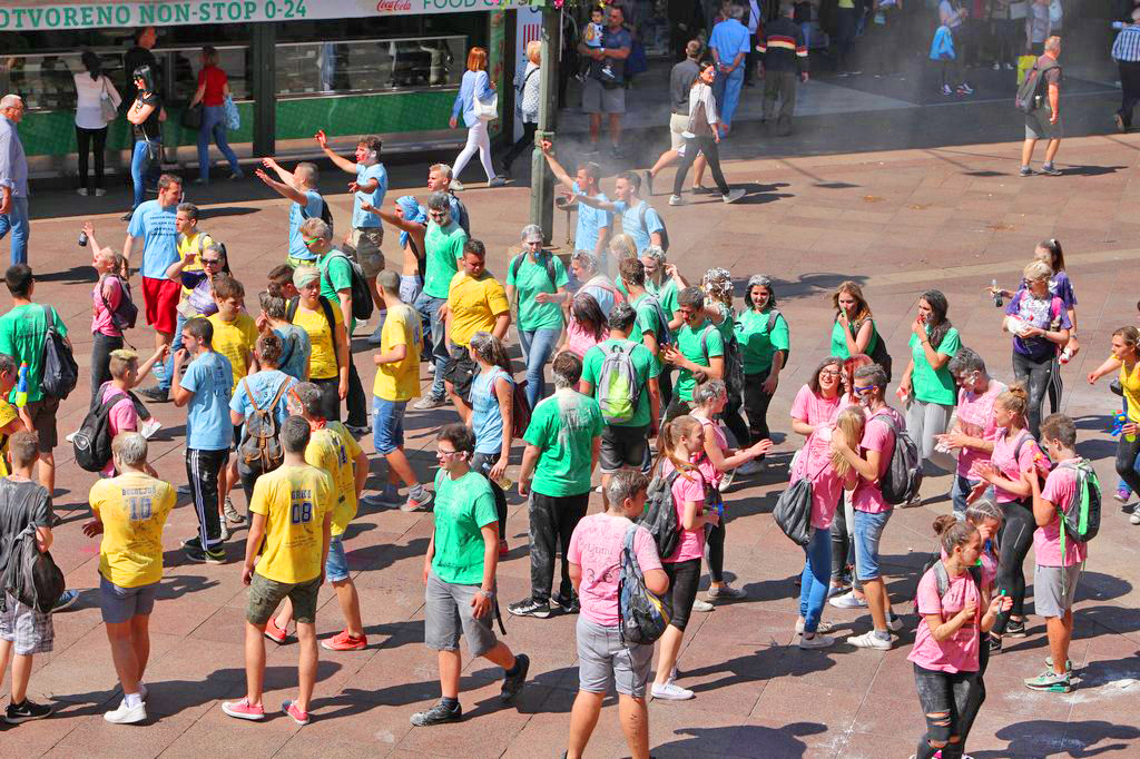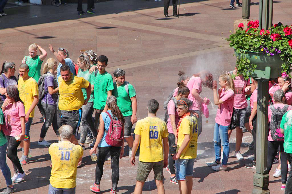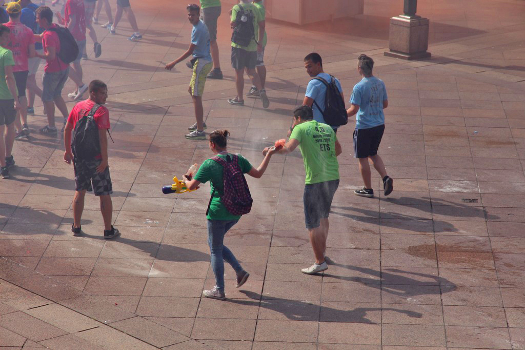 Riječki maturanti danas slave posljednji dan nastave, a opremljeni tradicionalnim slavljeničkim rekvizitima – šaljivim majicama, brašnom, jajima, zviždaljkama i pićima različitih vrsta, zajedno s kišom zauzeli su centar grada te se udomaćili na Delti.