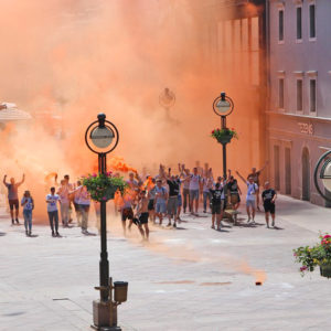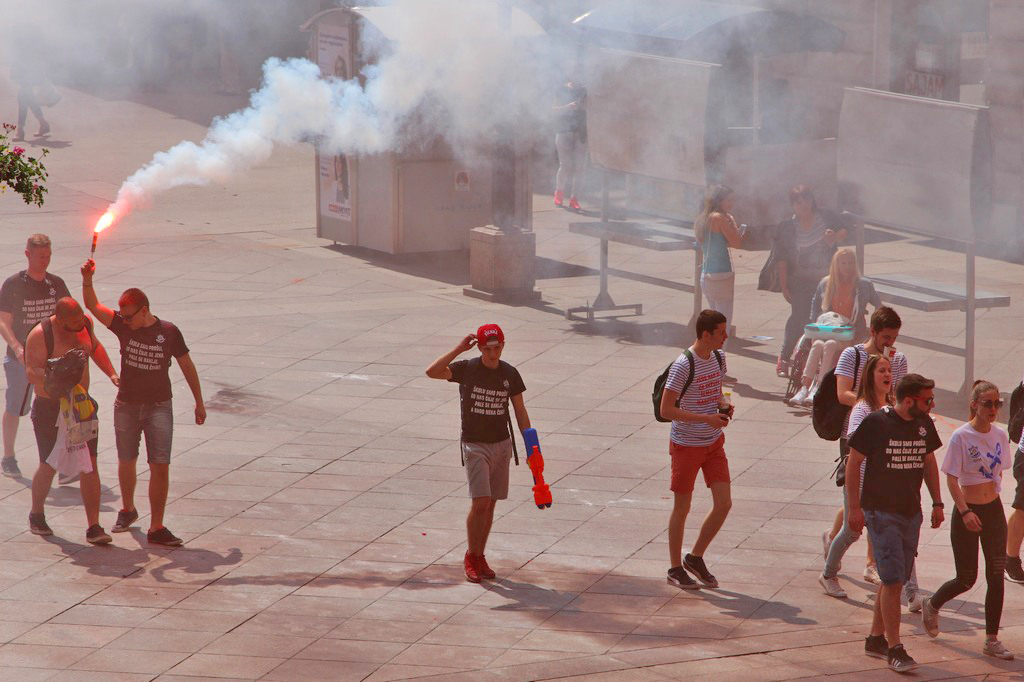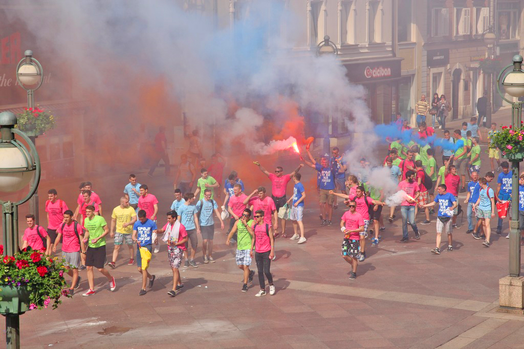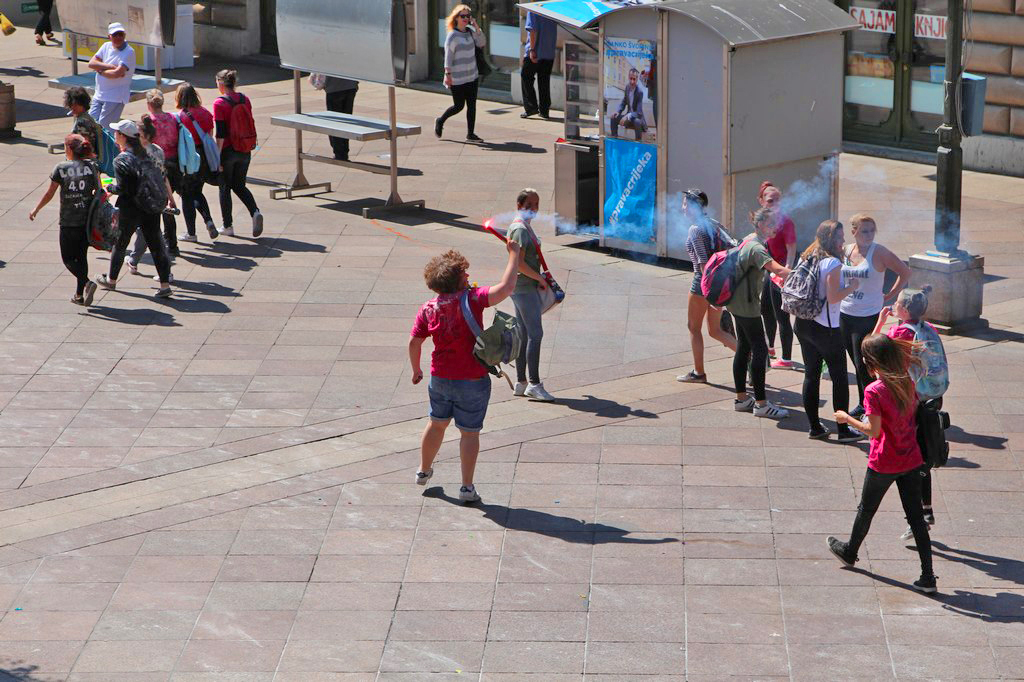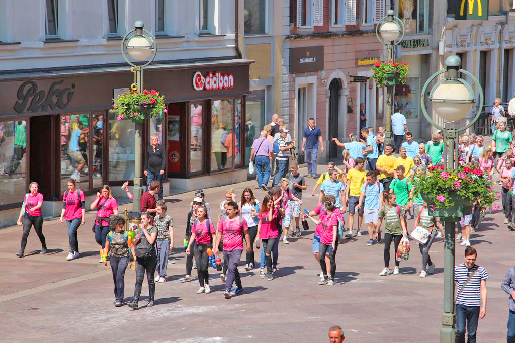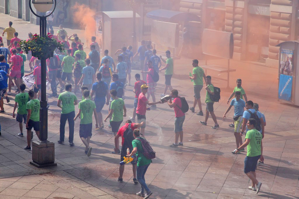 Riječki maturanti danas slave posljednji dan nastave, a opremljeni tradicionalnim slavljeničkim rekvizitima – šaljivim majicama, brašnom, jajima, zviždaljkama i pićima različitih vrsta, zajedno s kišom zauzeli su centar grada te se udomaćili na Delti.