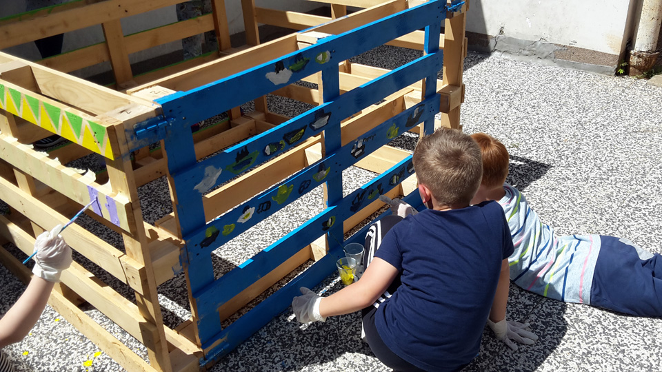 za kompostiranje i oznake za mediteranski vrt, te su oslikani vanjski i unutarnji zidovi.