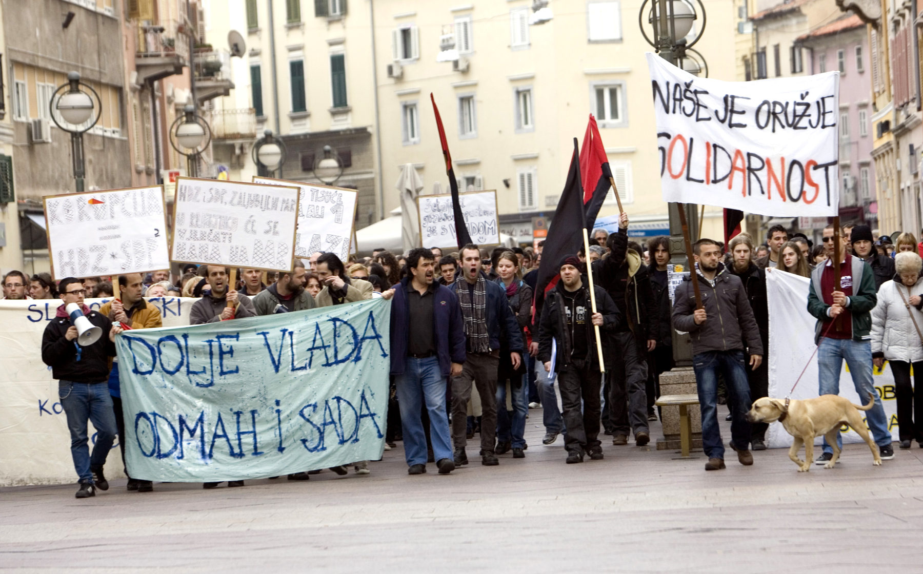 Jadranskog trga i natrag nosili transparente “Dolje vlada odmah i sada”,