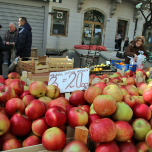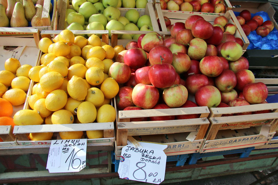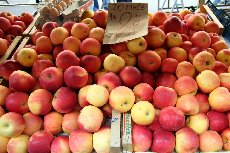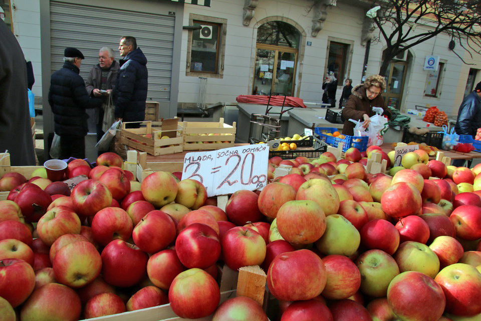 raznovrsna ponuda jabuka: idared stoji 8 kuna, jonagold 10, a pink od 12 do 14