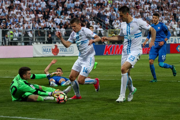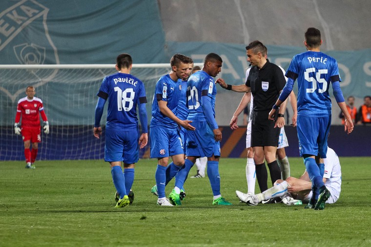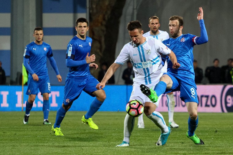 U derbiju 27. kola Prve HNL u Rijeci su nogometaši Rijeke i Dinama odigrali bez pobjednika – 1-1(0-0), pa riječki sastav i dalje ima četiri boda više od Zagrepčana. Pred 5500 gledatelja na stadionu Rujevica sudio je Zebec iz Varaždina. Strijelci: 1-0 Andrijašević (68), 1-1 Soudani (86).