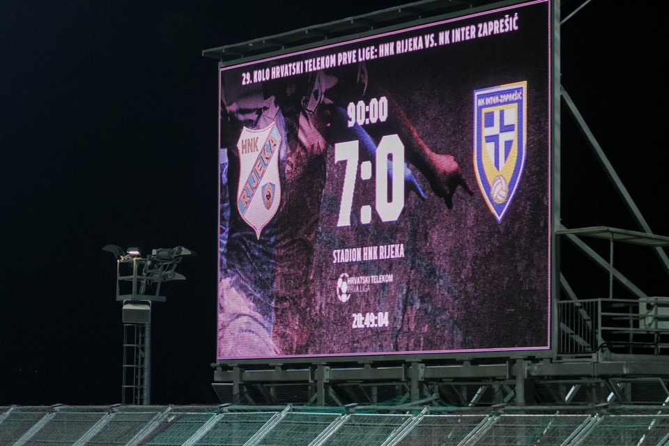 Rijeka je uvjerljivom igrom slavila kod kuće protiv Intera, pa Dinamo još nije prvak Hrvatske. Naime, Zagrepčani su još danas mogli proslaviti naslov da je Rijeka kiksala, no već u prvom dijelu domaćini su vodili s 3-0.