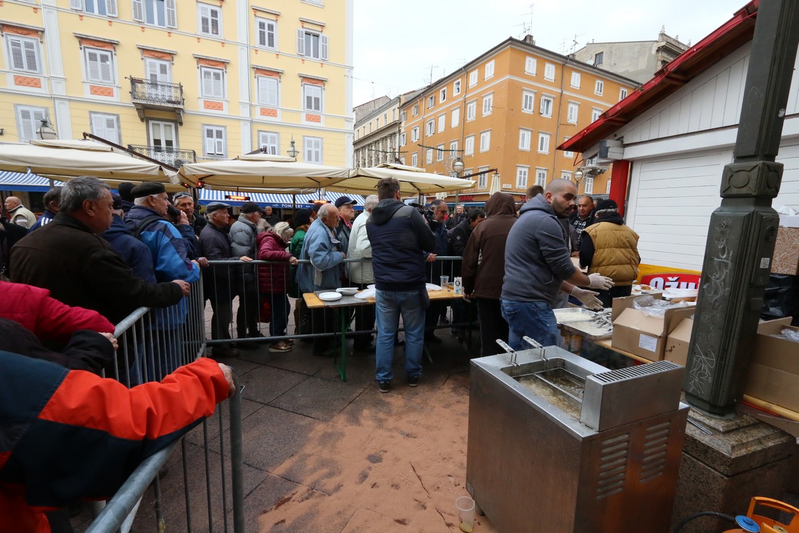 Povodom blagdana sv. Nikole, a u sklopu manifestacije Rijeka Advent, na Trgu 128. brigade HV-a održana je gastrofešta na kojoj su građanima podijeljene porcije friganih riba.