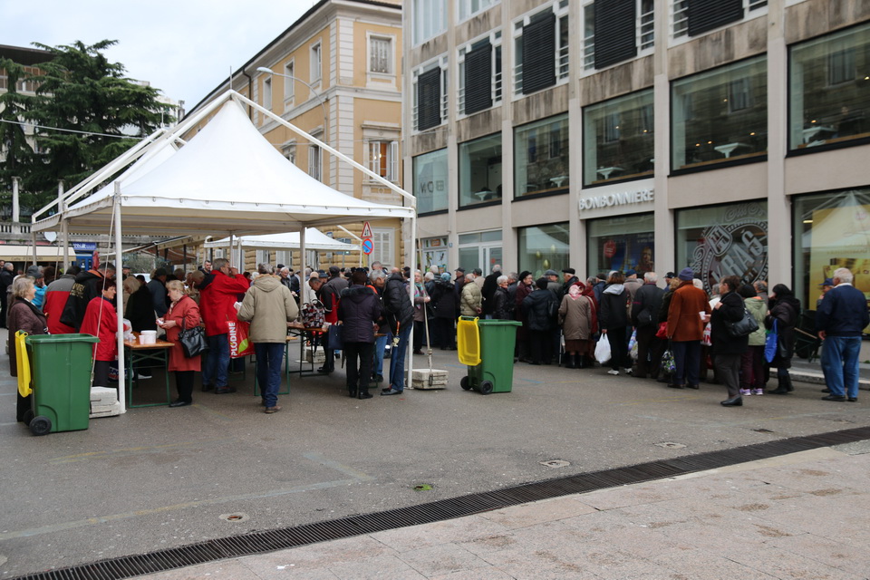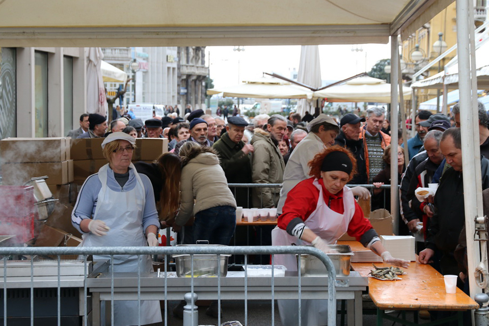 Tradicionalno, povodom nemrsa za Veliki petak, Grad Rijeka je na Trgu 128. brigade HV-a organizirao podjelu friganih srdela. Druženje građana započelo je u 9 sati, a obroke je pripremilo Ugostiteljstvo 3. maj“ d.o.o. Rijeka. Ribu je dostavila tvrtka Ugor d.o.o. Rijeka, a kruh PIK d.d. Rijeka. Građanima se na marendi pridružio i riječki gradonačelnik Vojko Obersnel.