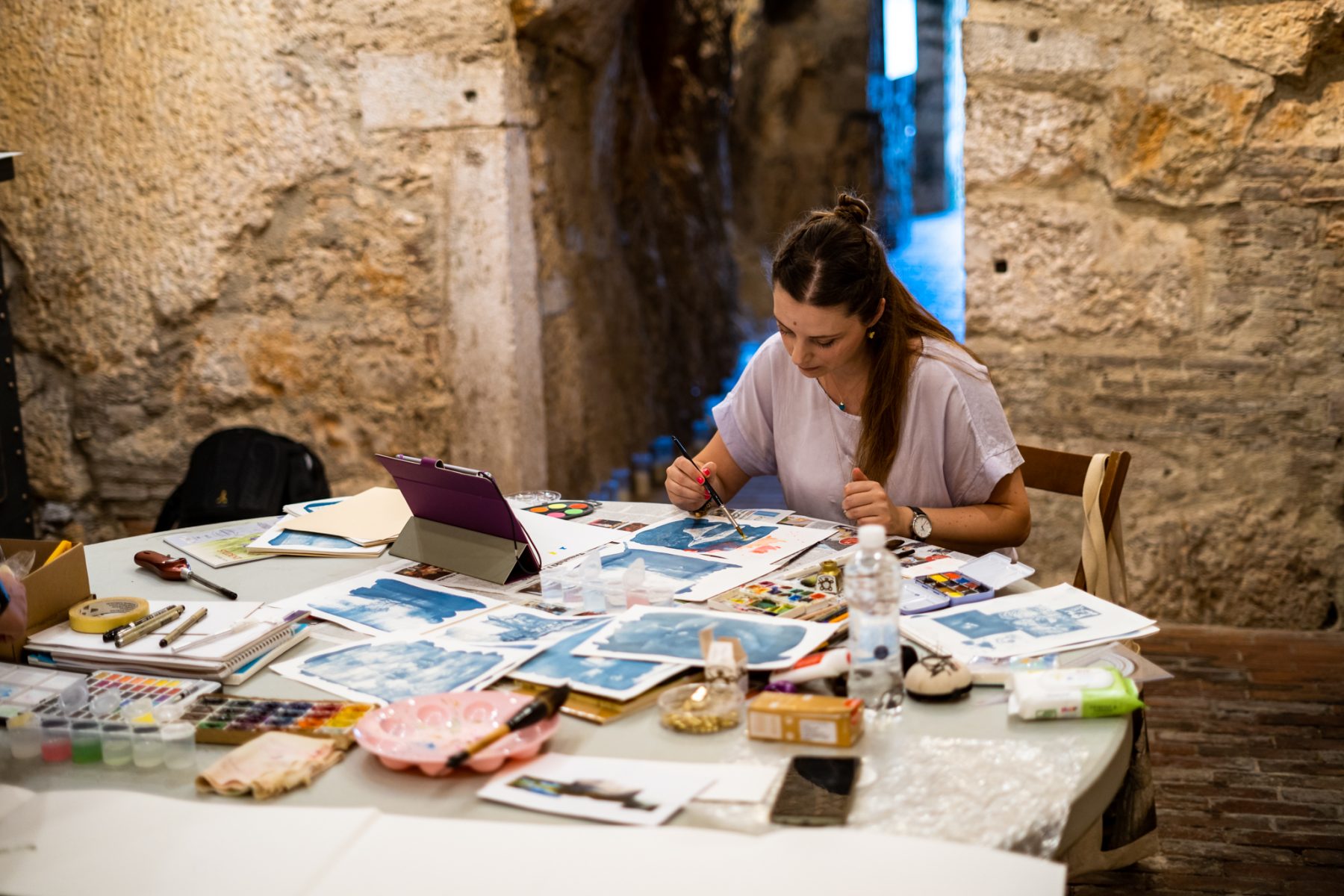 Cijanotipije Andreje Staničić podloga su njenim razmišljanjima, osmišljene da poput dnevnika oblikuju misli i prenose intimne fotografske bilješke na papir. Modrine i bijele sjene osnova su daljnjeg rada jer umjetnica na njih intervenira bojom, slikajući stvara sklad i ravnotežu kolorističkog suglasja. To su teme iz susjedstva, ali i izmaštani svjetovi puni zračnosti i snova.