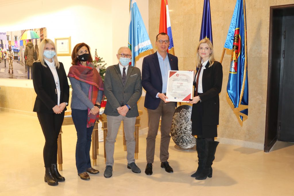 Prilikom današnjeg susreta izvršna direktorica Centra za kulturu dijaloga Nejra Kadić Meškić Gradu Rijeci je uručila „Povelju za promicanje različitosti u jednakosti“.