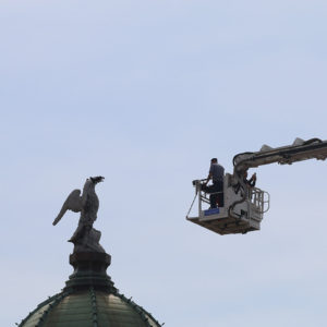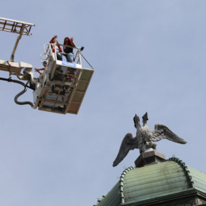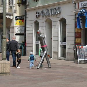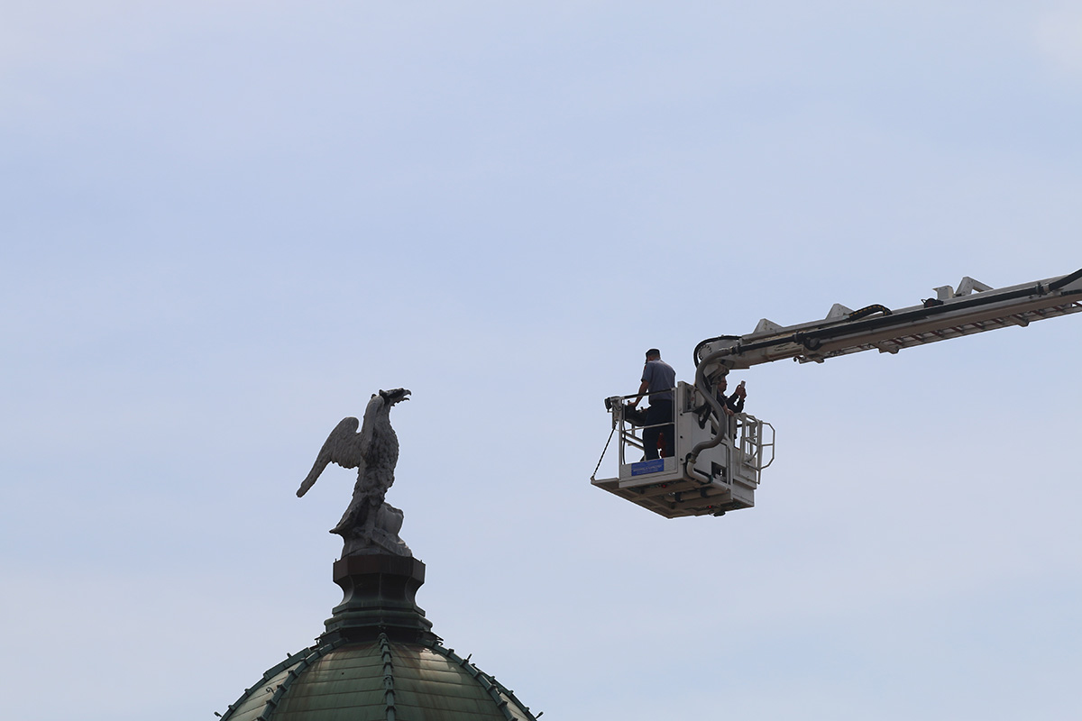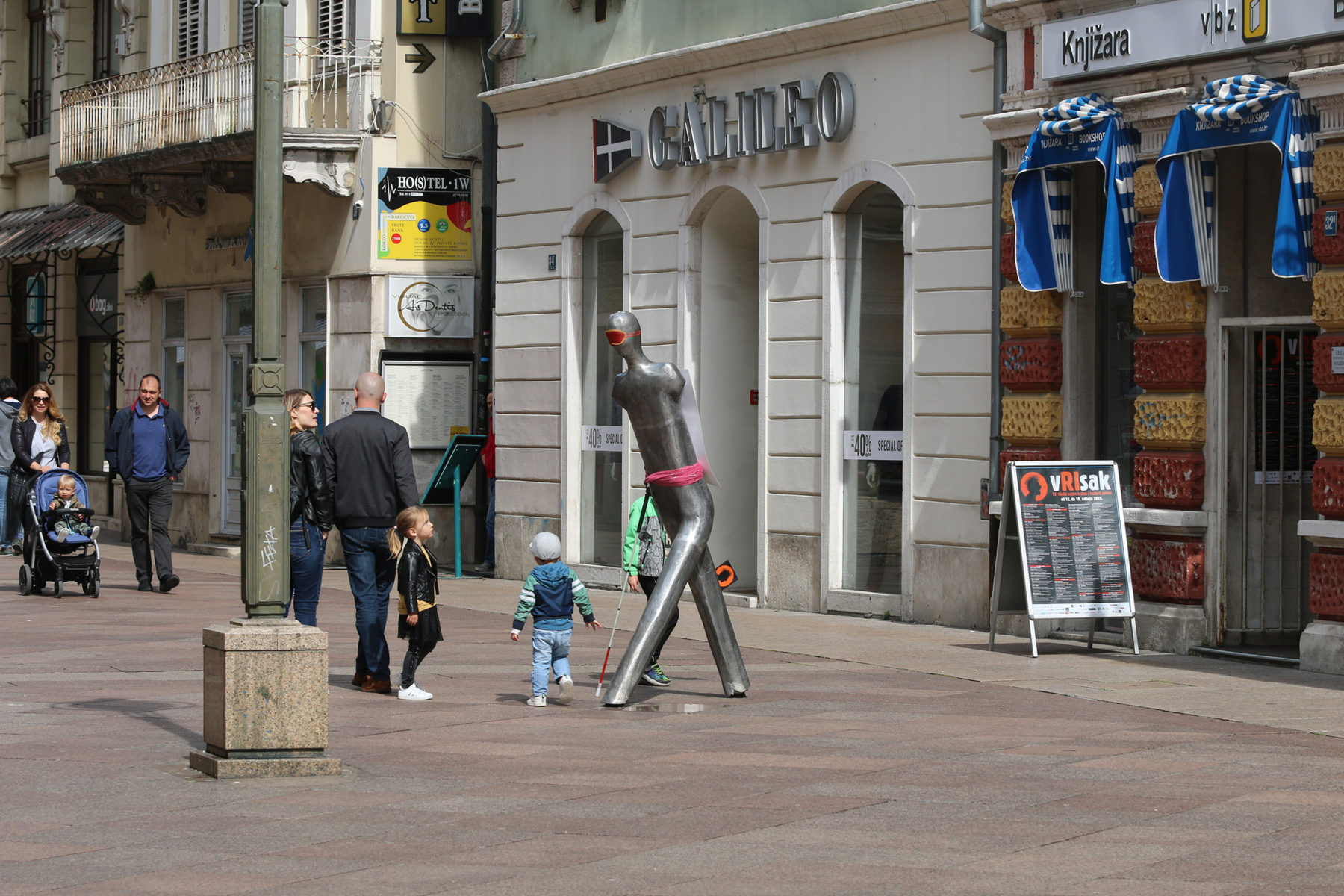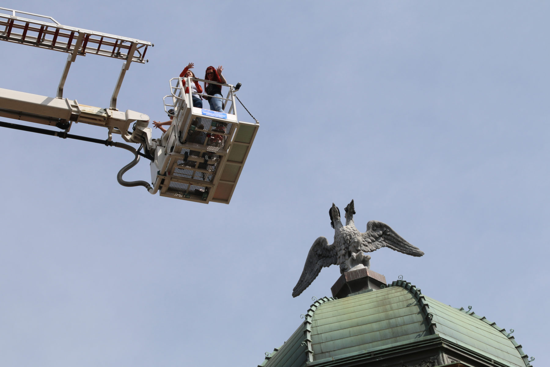 Građani su se uz pomoć dizalice Javne vatrogasne postrojbe Grada Rijeke mogli izbliza susresti s orlom na riječkoj uri kojem je preko očiju jedne glave stavljen povez, a na drugu glavu slušalice, simbol slijepoće te važan alat u učenju i razvoju slijepe djece.