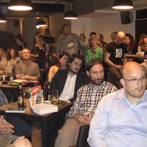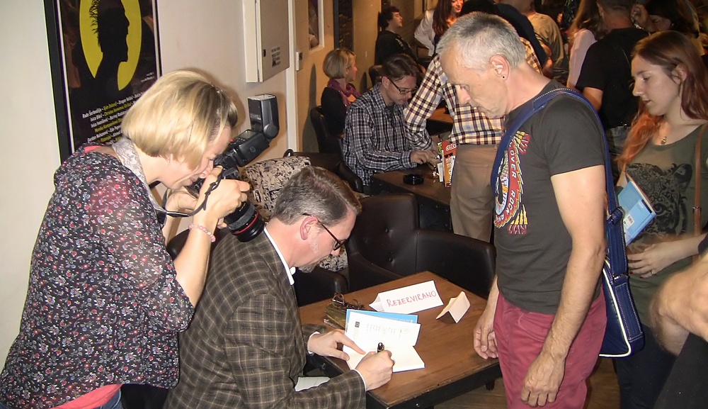 U prostoru Kluba “Bačva” Sjón, prevoditeljica Tatjana Latinović i urednica Sandra Ukalović govorili su o romanu “Plava lisica”, nagrađivanom i prevedenom na čak trideset i tri jezika. Razgovor se, naravno, dotaknuo i drugih Sjónovih radova, objavljivanja samizdata i prodavanja istih po autobusima, njegovog kratkog političkog angažmana, a nezaobilazna tema bila je i suradnja s Björk.