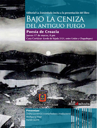”Bajo la ceniza del antiguo fuego” je druga knjiga hrvatskih autora koju izdaje nakladnička kuća ”La Zonámbula” kojoj je na čelu pjesnik i sveučilišni profesor Jorge Orendáin (2008. odine objavljena je knjiga ”Murmullo sobre el asfalto” Lane Derkač i Davora Šalata u prijevodu iste prevoditeljice).