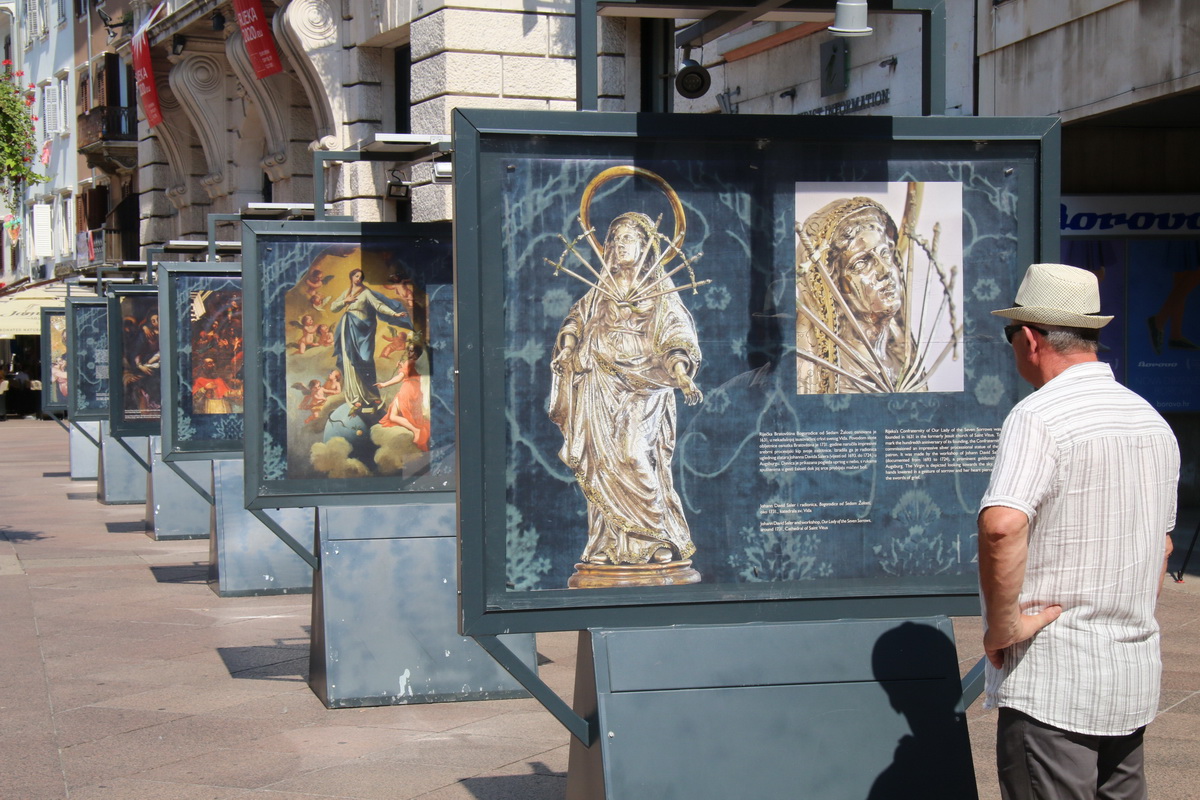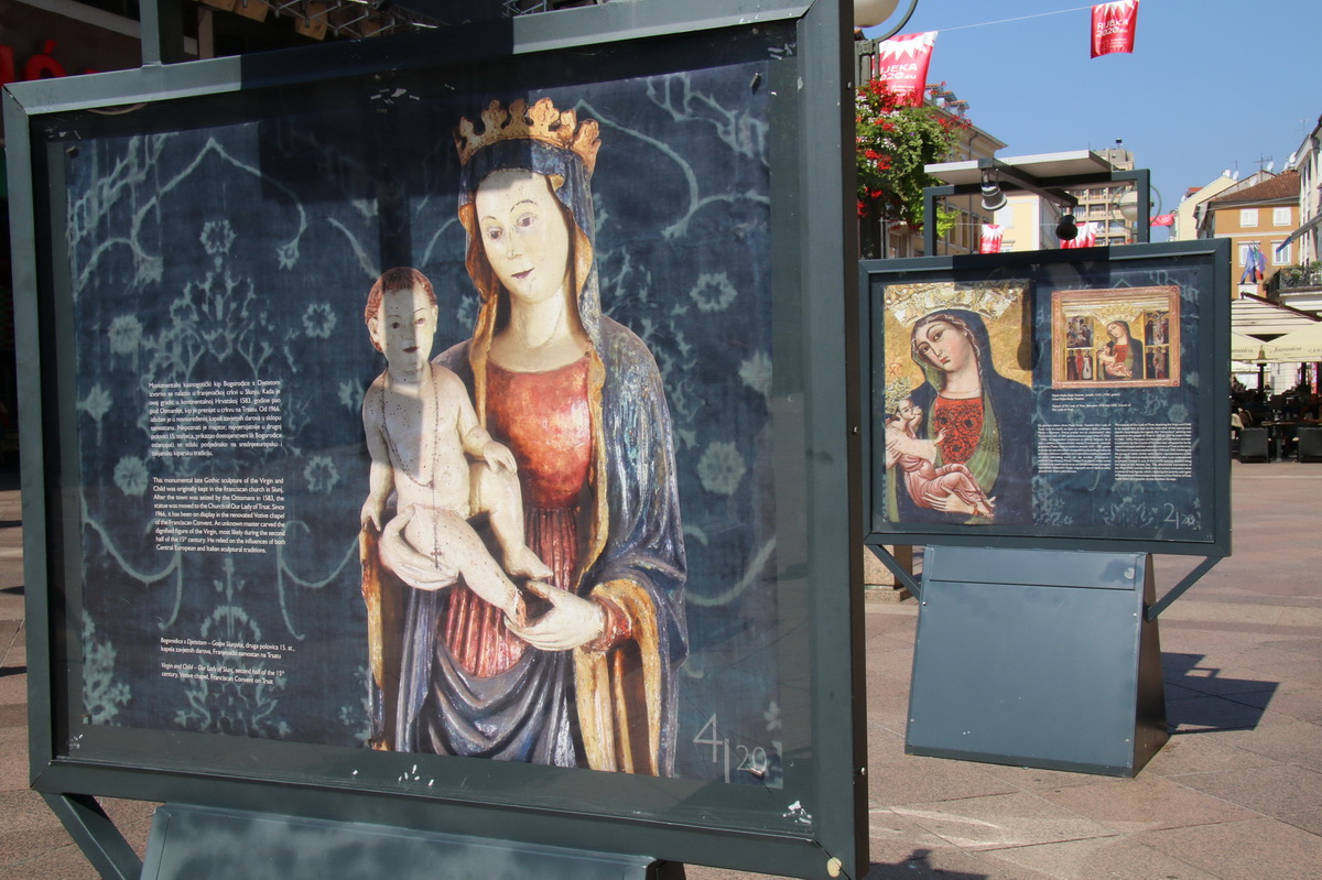 Povodom blagdana Velike Gospe na postamentima na Korzu otvorena je izložba „Lice Marije u Rijeci“ posvećena liku Bogorodice u umjetničkoj baštini Rijeke.