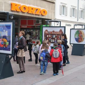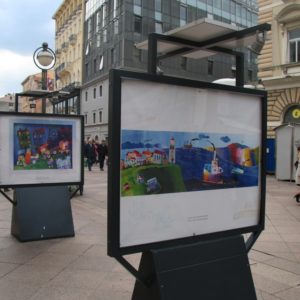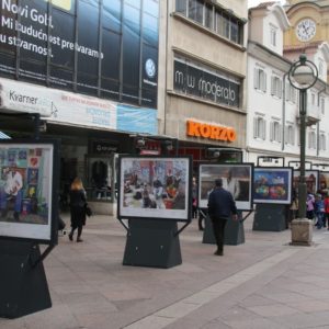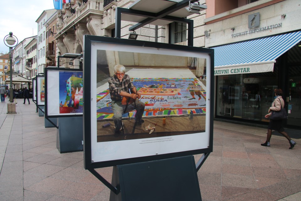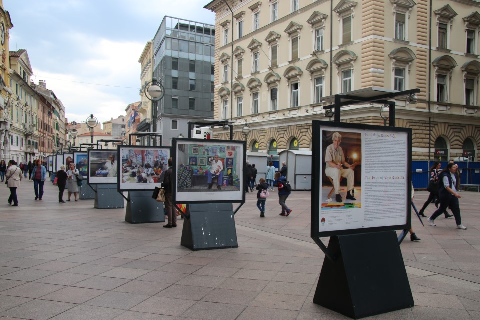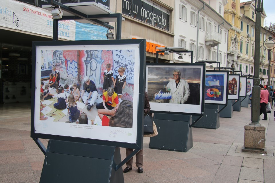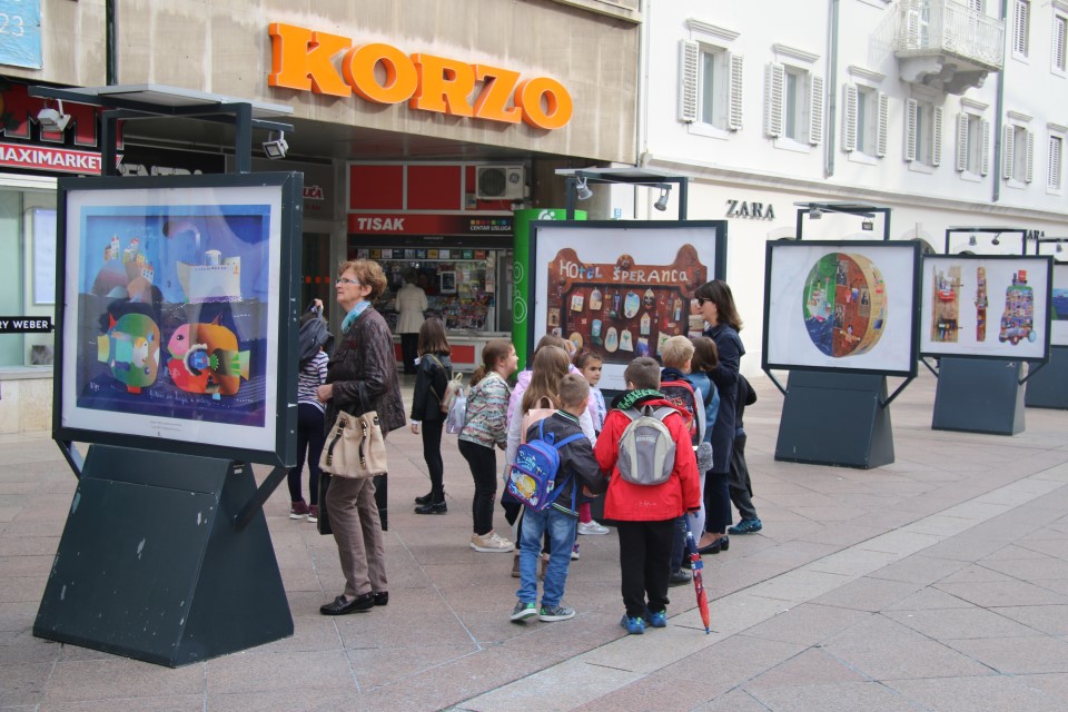 Izložba postavljena na postamentima na Korzu prikazuje umjetnički rad Vjekoslava Voje Radoičića prikazan u monografiji „Radoičić: San“ izdanoj prošle godine, a moći će se pogledati do 12. studenog. Uz ovu izložbu, do 19. studenog u izlozima Grada Rijeke naći će se i izložba dječjih radova na temu ”Kišobran Voje Radoičića” .