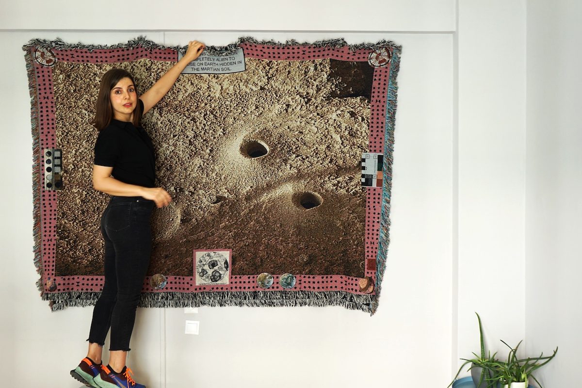Kao forma tekstilne umjetnosti koja se mogla koristiti kao prenosivo sklonište ili topli ukras na zidovima, tapiserije su kroz stoljeća pratile ljude na putovanjima i zauzimale istaknuto mjesto u njihovim domovima. Slijedeći tradiciju izrade tapiserija, umjetnica na njima prikazuje pojedine krajolike Marsa koji su odabrani iz NASA-ine zbirke fotografija, pitajući se može li takav način „dokumentiranja“ utjecati na naš osjećaj odgovornosti prema drugim svjetovima koje namjeravamo posjetiti. Tkanjem složenih kozmoloških priča o tehnologiji, istraživanju i kolonijalizmu u tapiserije, instalacija otvara raspravu o aktualnim temama naše sadašnjosti i budućnosti.