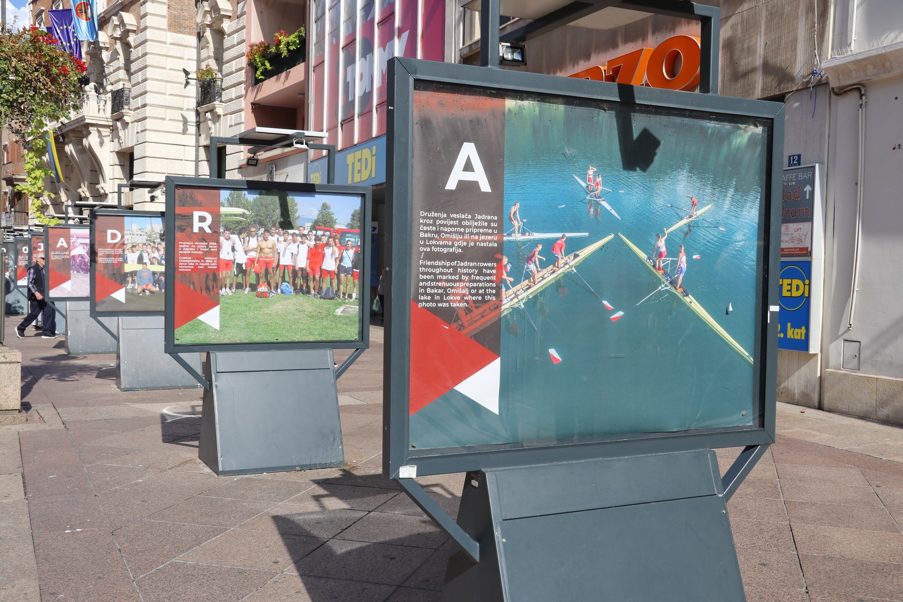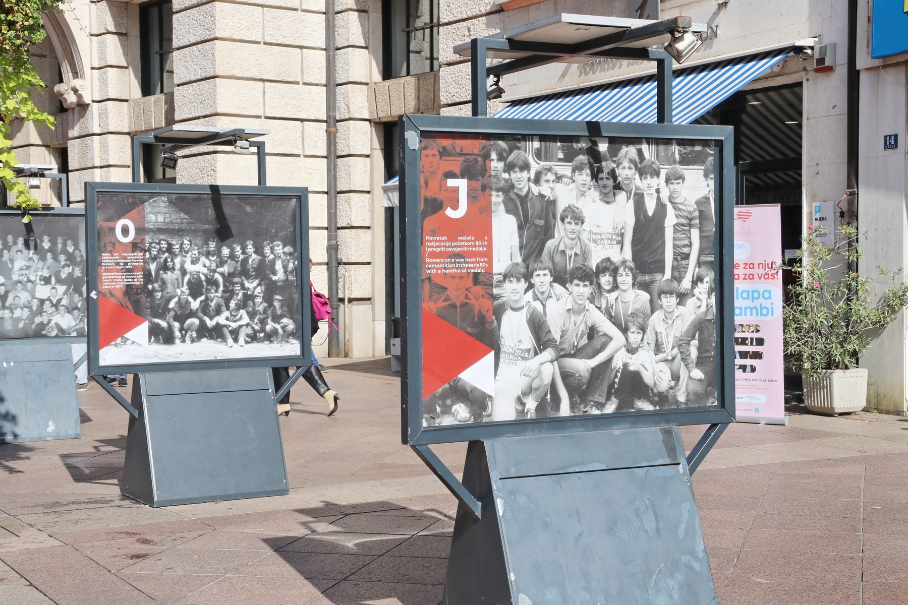 Na postamentima na Korzu po drugi puta ove godine postavljena je izložba koja prikazuje dugu stogodišnju povijest Veslačkog kluba Jadran koji je osnovan na Sušaku 1922. godine kao slijednik starijih sušačkih klubova Vile, Uskoka i Rožnice. Kako je navedeno na izložbi, 1949. godine Jadran je objedinio riječke klubove Eneo, Quarnero i Liburniju, a od prvog zaveslaja na Kvarneru, bez obzira na pripadnost, naslijeđe ili bilo kakve različitosti, generacije veslača i veslačica kroz pobjede i poraze, povezivalo je prijateljstvo. Tome u čast postavljena je i ova izložba, istaknuo je potpredsjednik kluba Ivo Zrilić i dodao kako će vrhunac slavljeničke godine biti u prosincu kada će biti predstavljena i monografija kluba.
