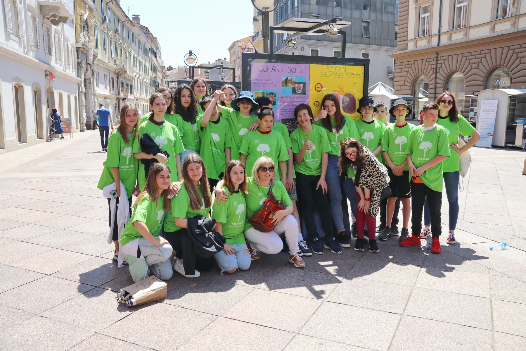 Na Korzu se okupilo mnoštvo djece iz riječkih osnovnih škola, a organizator programa je Nastavni zavod za javno zdravstvo Primorsko-goranske županije.