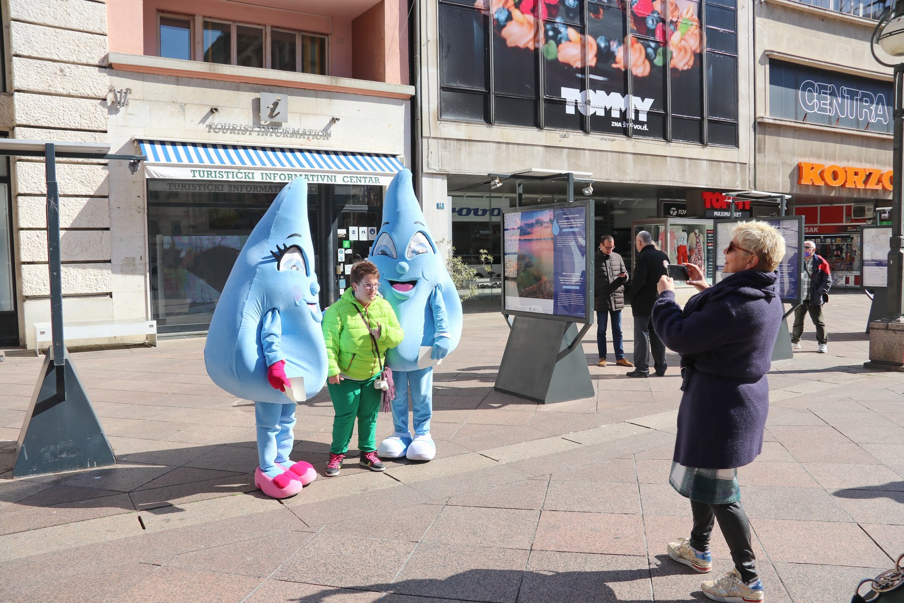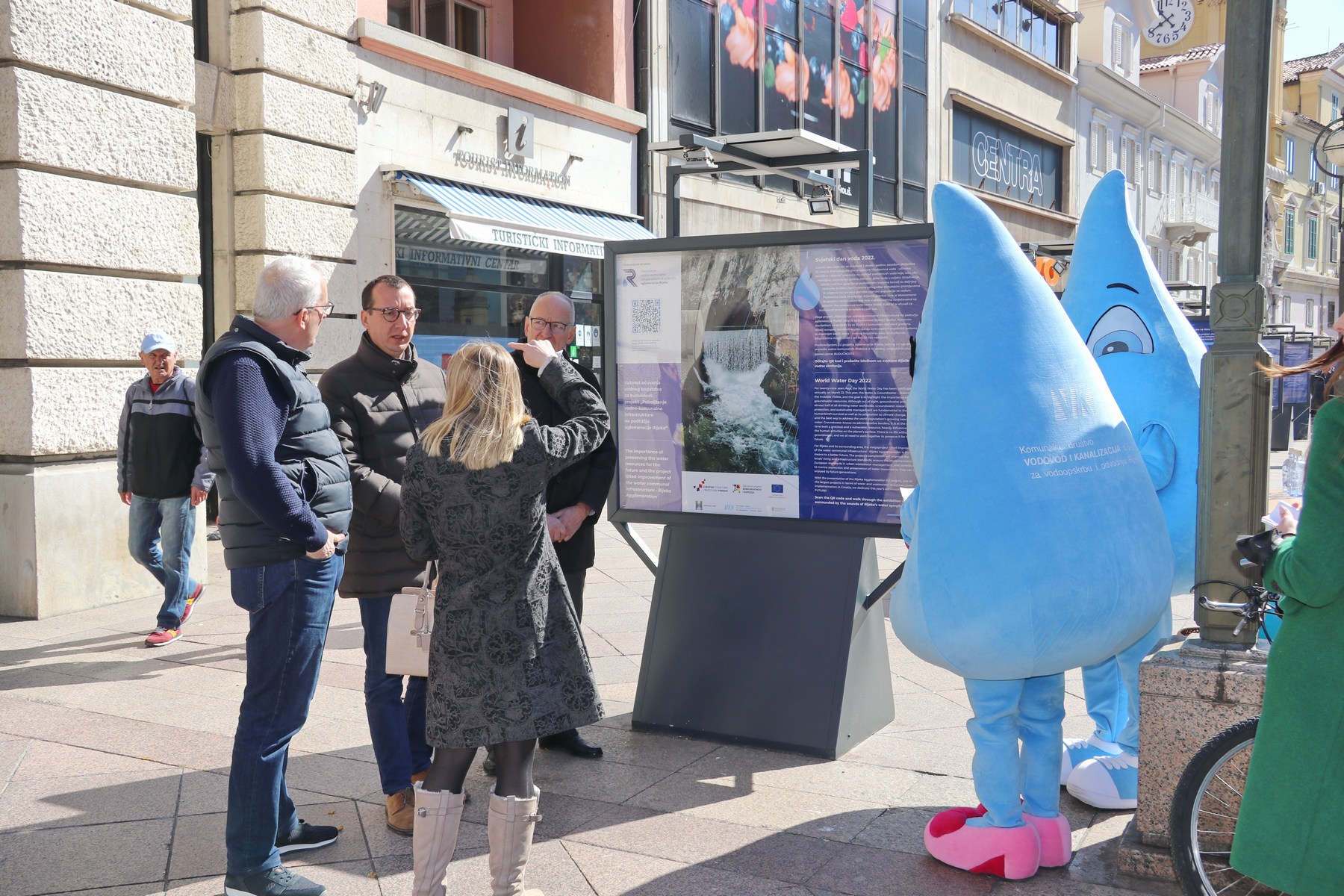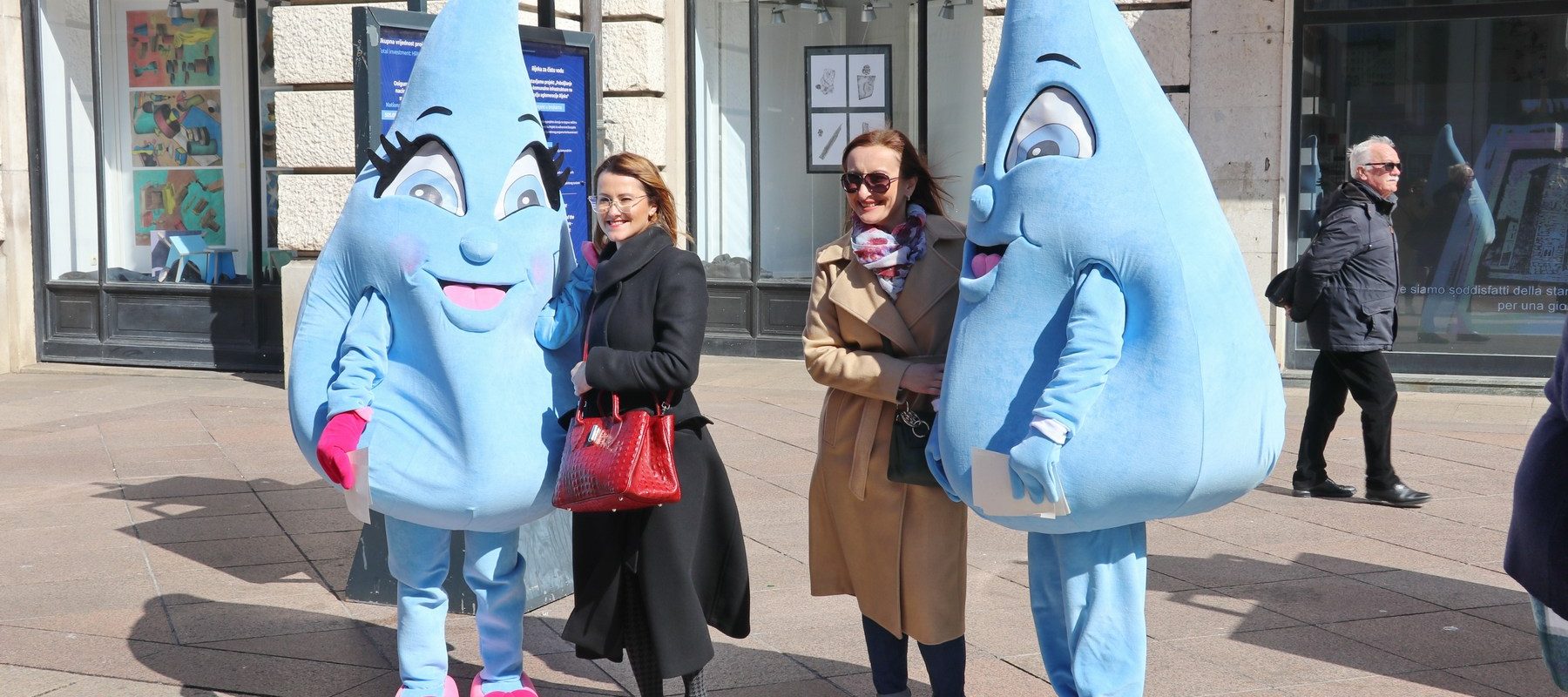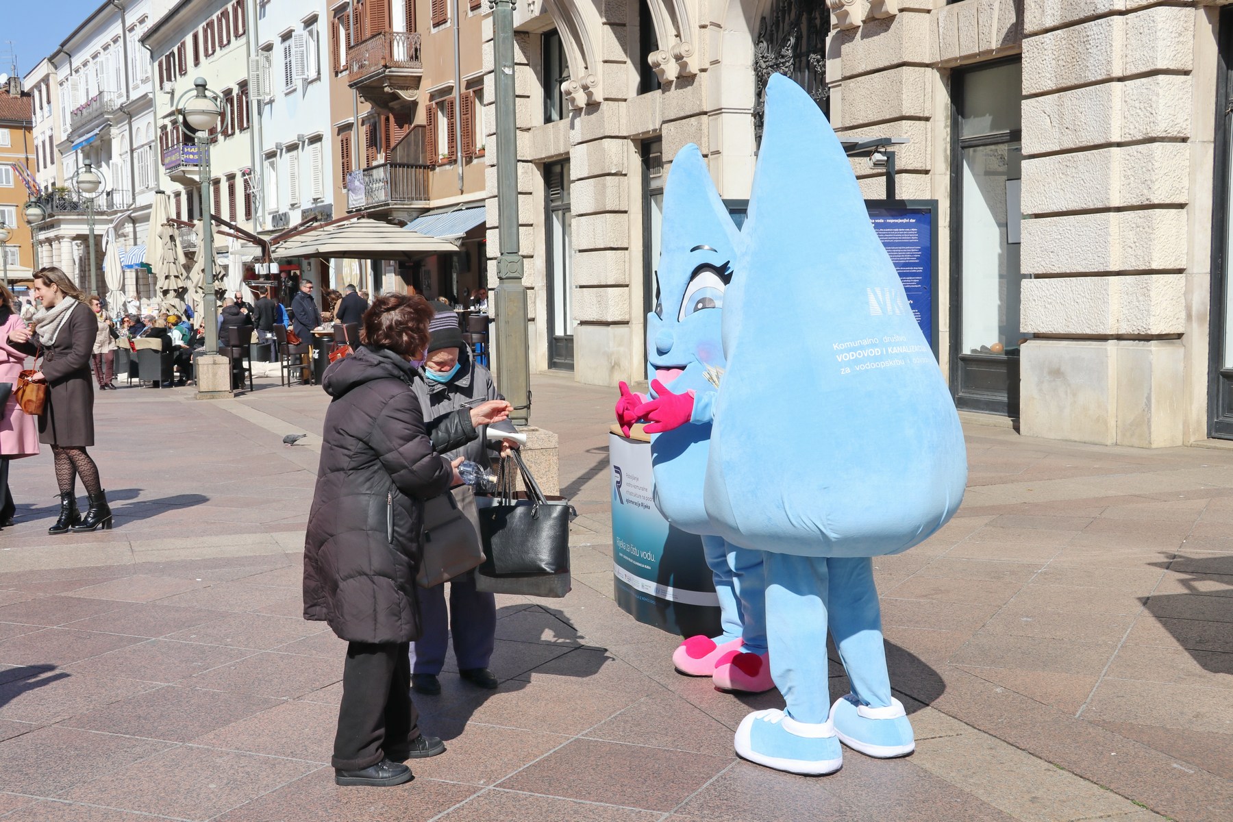 Prilikom otvorenja izložbe KD ViK-ove maskote, kapljice riječke vode dijelile su građanima promotivne materijale.