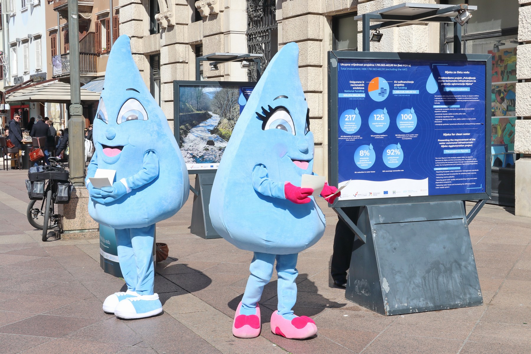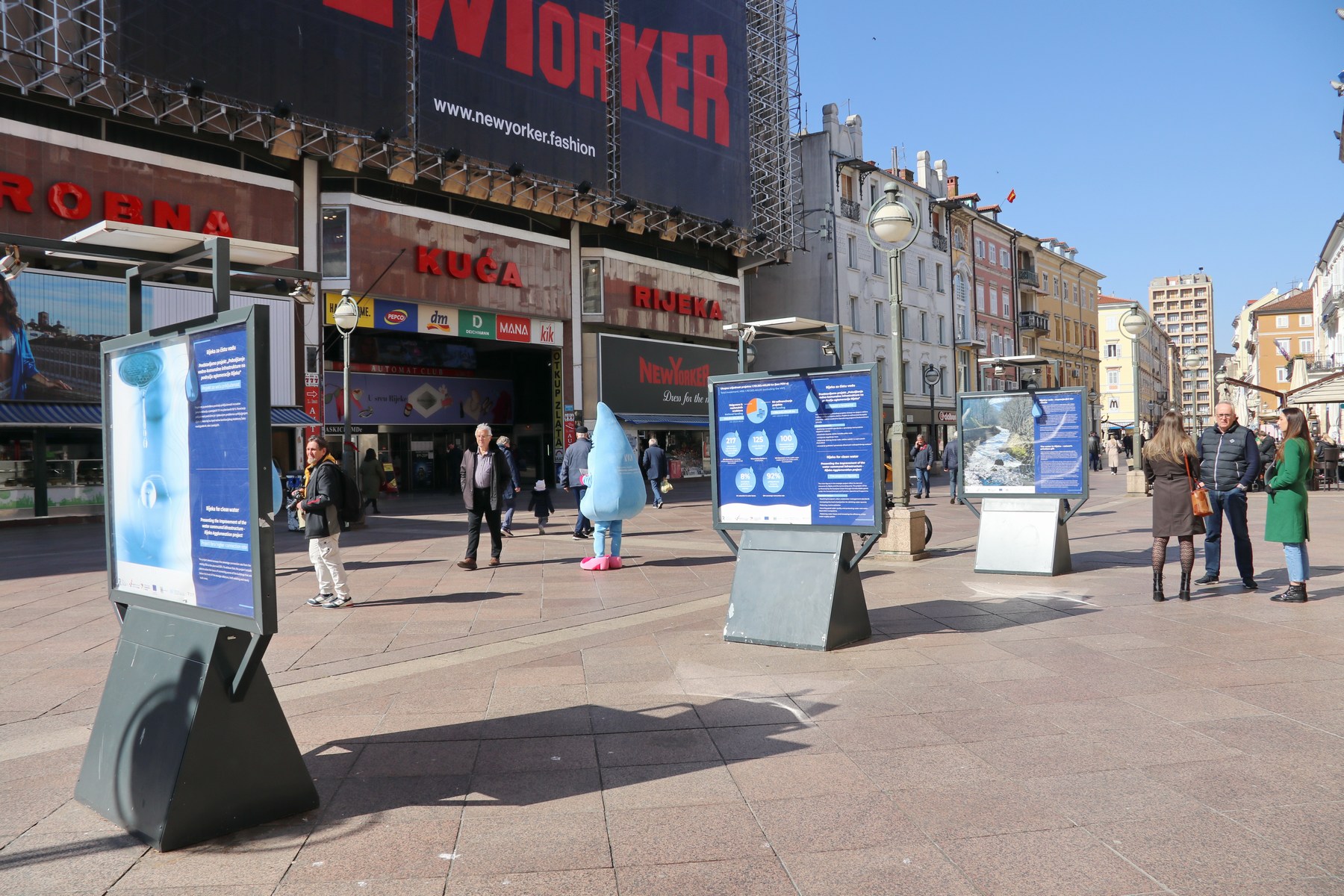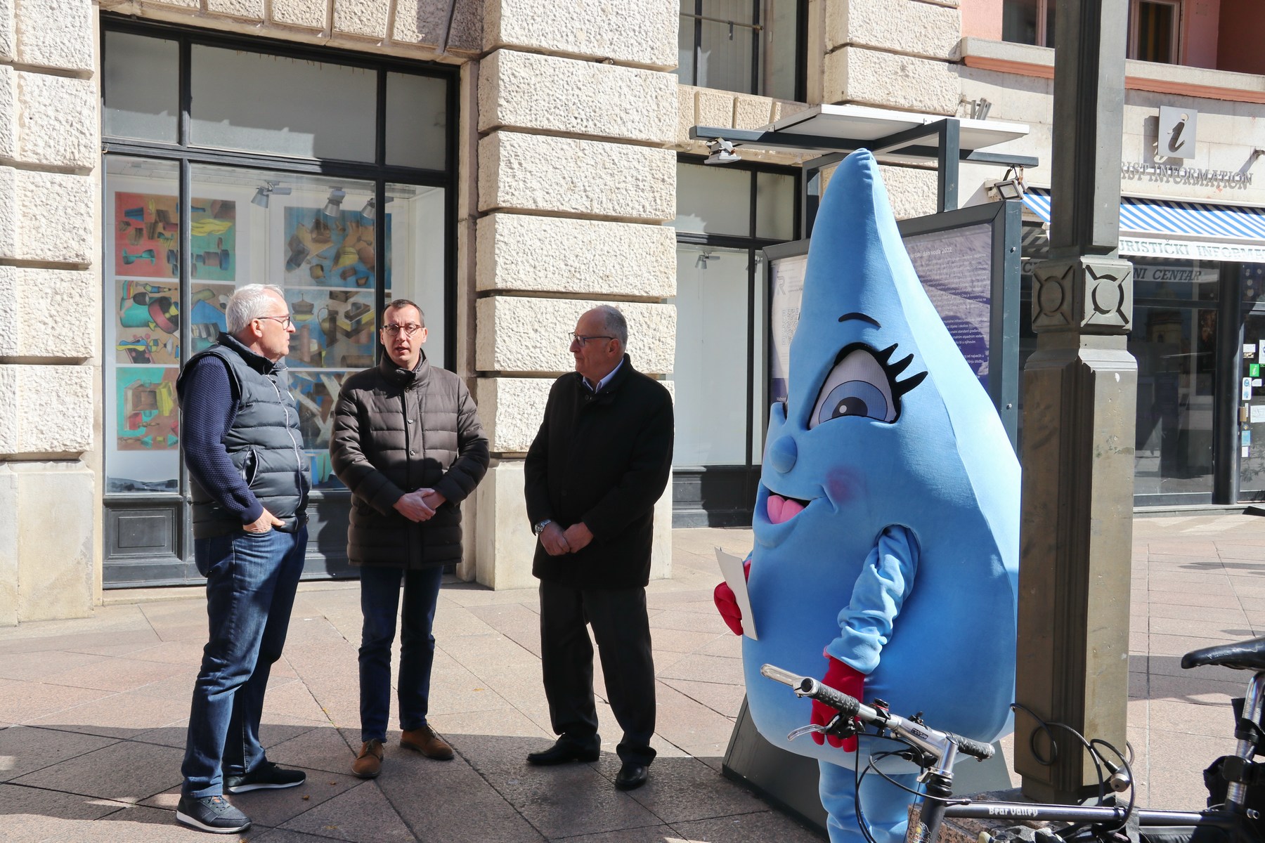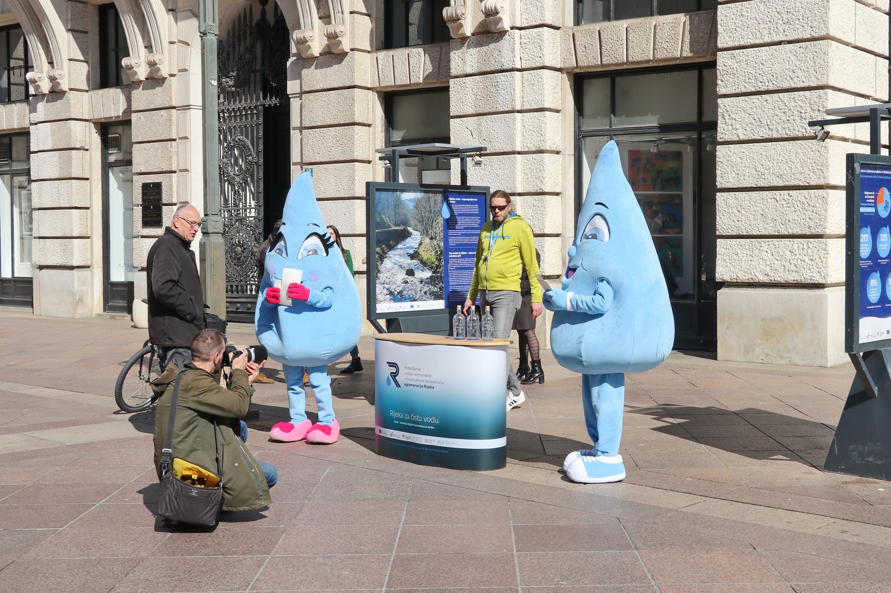 Prilikom otvorenja izložbe KD ViK-ove maskote, kapljice riječke vode dijelile su građanima promotivne materijale.