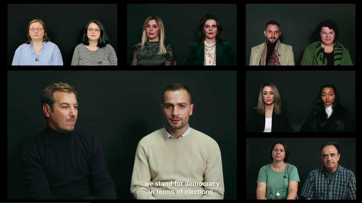 „Izvođenje demokracije“, kolektivni je participativni umjetnički rad nastao u suradnji s građanima, aktivistima, članovima inicijativi i radničkih kolektiva te političkih stranaka Srbije, Kosova i Sjeverne Makedonije. Rad koji se sastoji od serije razgovora i društvenih igara sudionika, izložbeno je oblikovan kao multimedijska instalacija u prostoru.