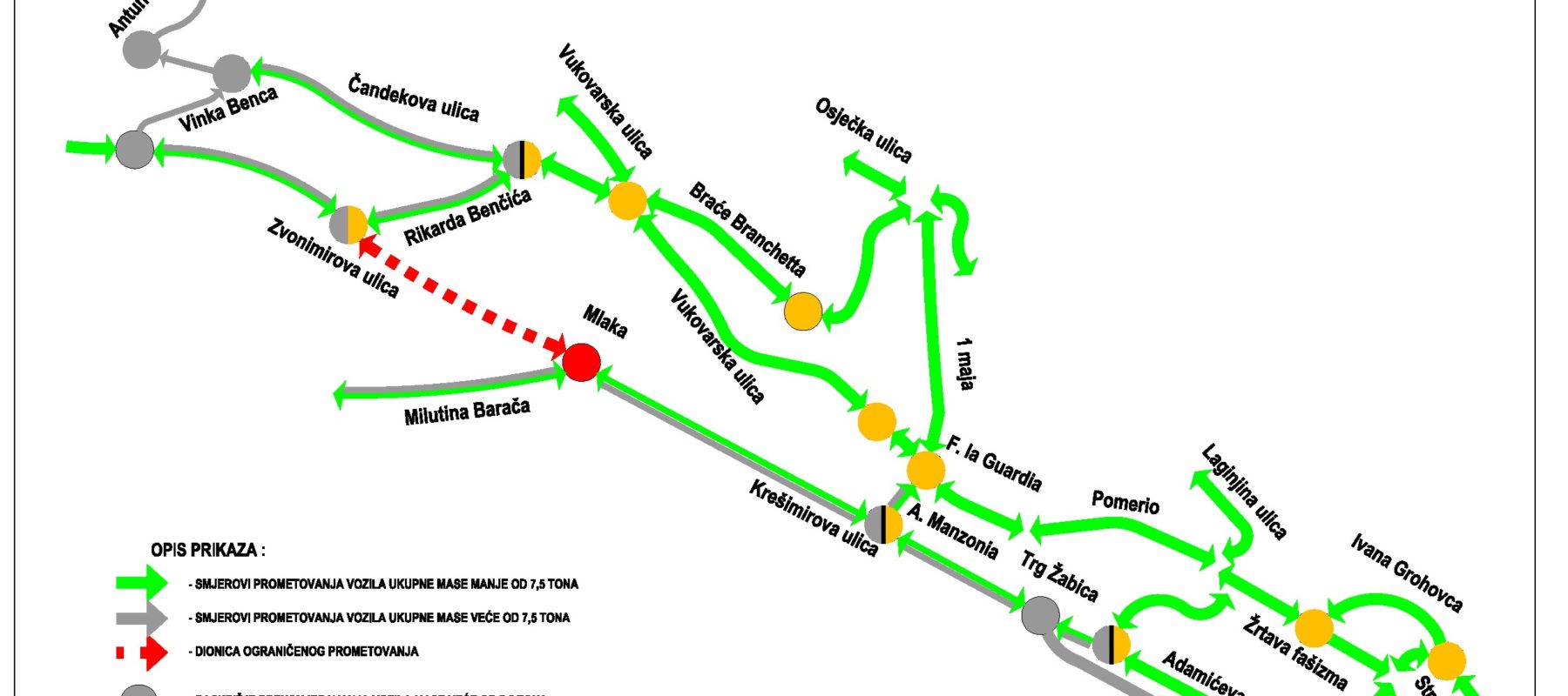 maksimalno korištenje označenih obilaznih smjerova kretanja.