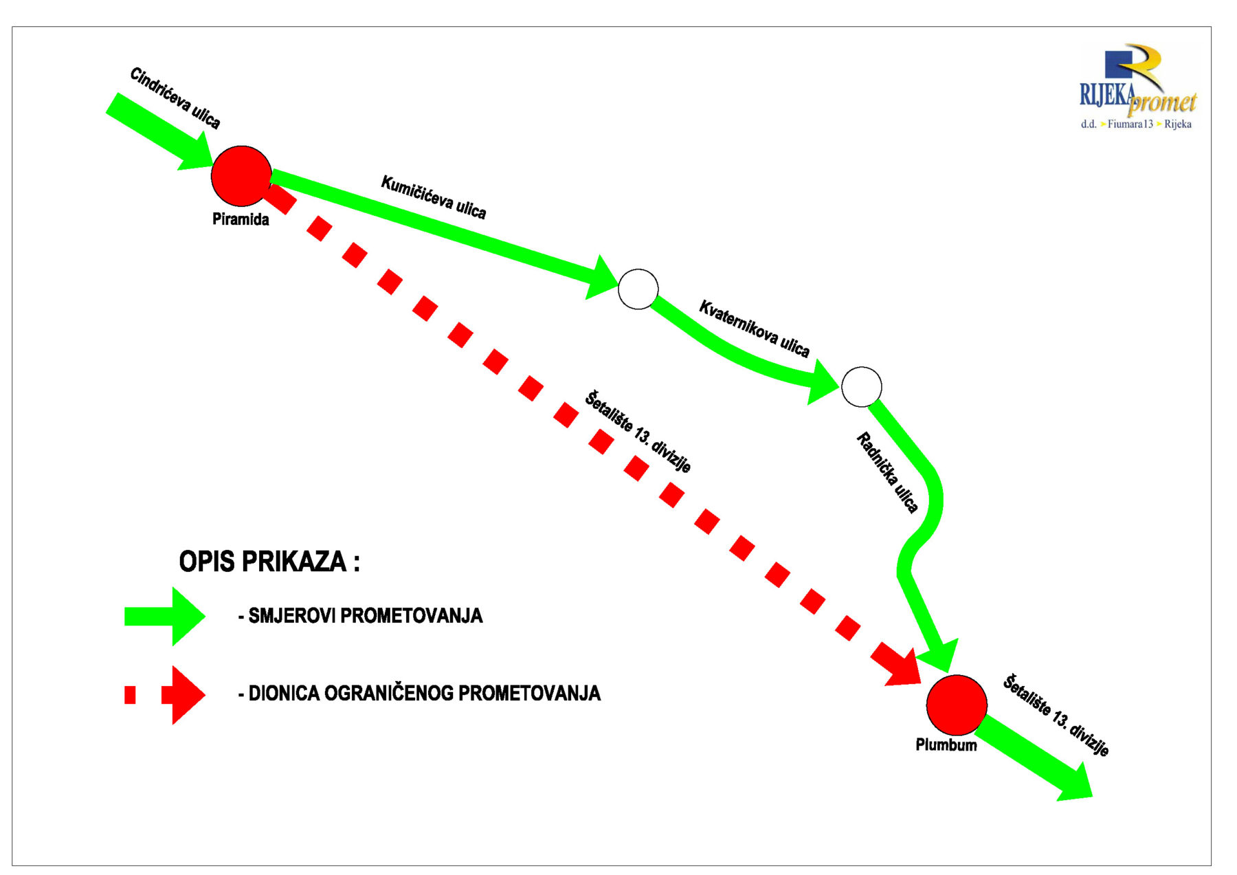 Plumbumu. Obilazni smjer kretanja je Cindrićeva – Kumičićeva – Kvaternikova –