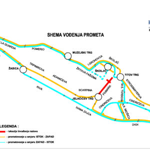 vrijeme izvođenja radova, cijeli promet u smjeru ISTOK-ZAPAD će se usmjeriti
