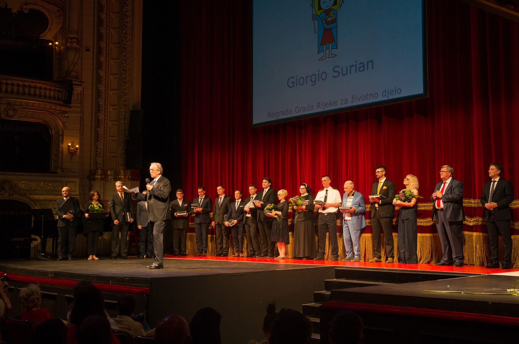 Najveće priznanje Grada Rijeke, nagrada za životno djelo, uručena je Giorgiu Surianu, članu ansambla Opere HNK Ivana pl. Zajca i nacionalnom prvaku opere za izniman doprinos riječkoj opernoj i kazališnoj sceni.