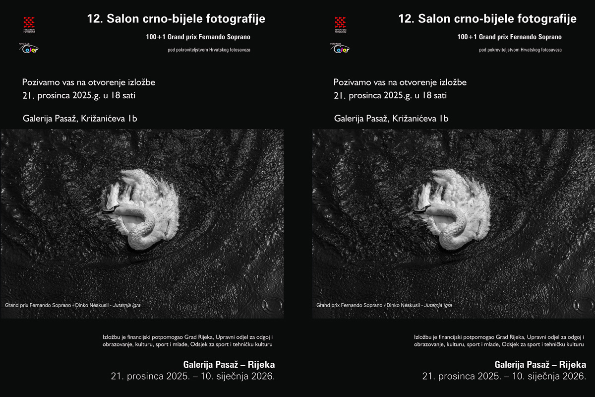 U Galeriji Pasaž u nedjelju, 21. prosinca s početkom u 18 sati, svečano se otvara 12. Salon crno-bijele fotografije 100+1.