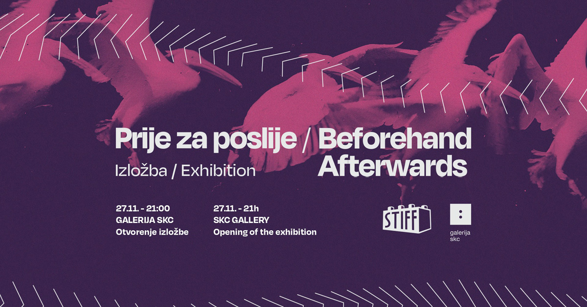 U četvrtak, 27. 11. s početkom u 21 sat u Galeriji SKC kao dio 12. izdanja Međunarodnog studentskog filmskog festivala – STIFF bit će otvorena izložba „Prije za poslije“ s kojom ćemo zakoračiti u svijet tragova koji oživljavaju kroz raznolike umjetničke perspektive.
