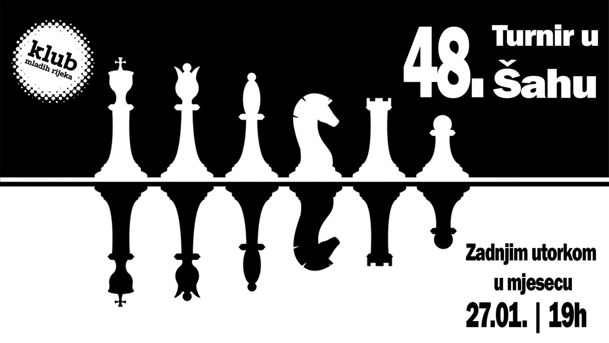 U utorak, 27. siječnja, s početkom u 19 sati u Klubu mladih Rijeka bit će održan 48. po redu turnir u šahu, tijekom kojeg će svoje vještine u opuštenoj atmosferi moći odmjeriti 40 natjecatelja.