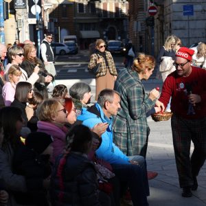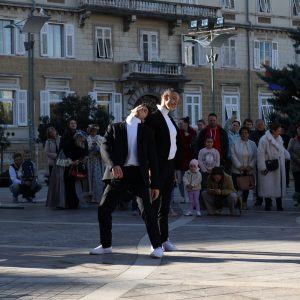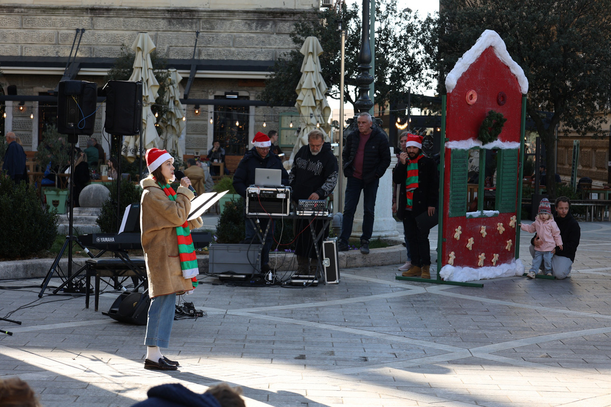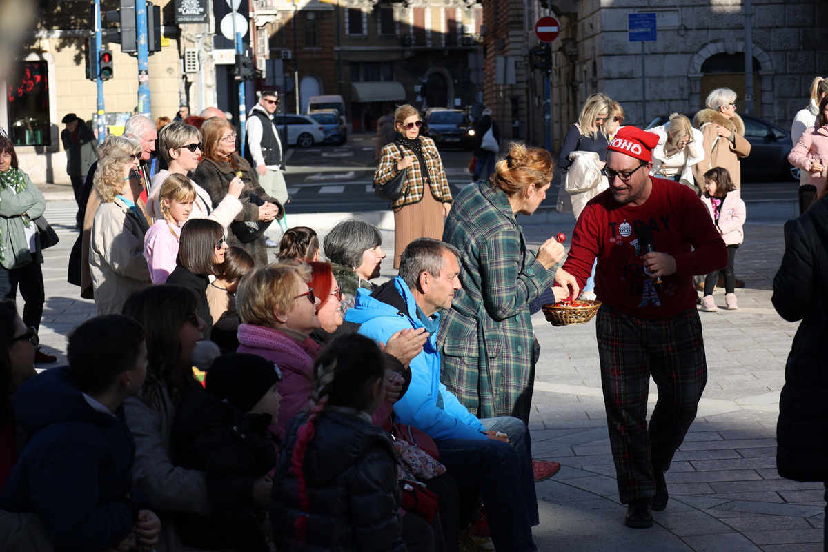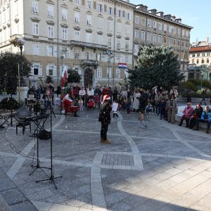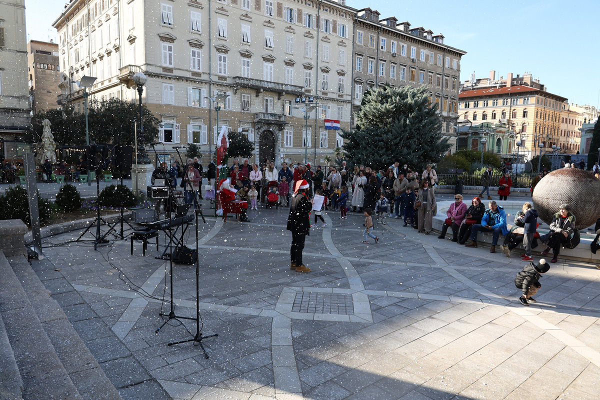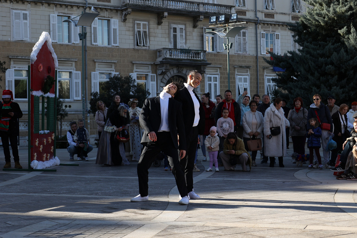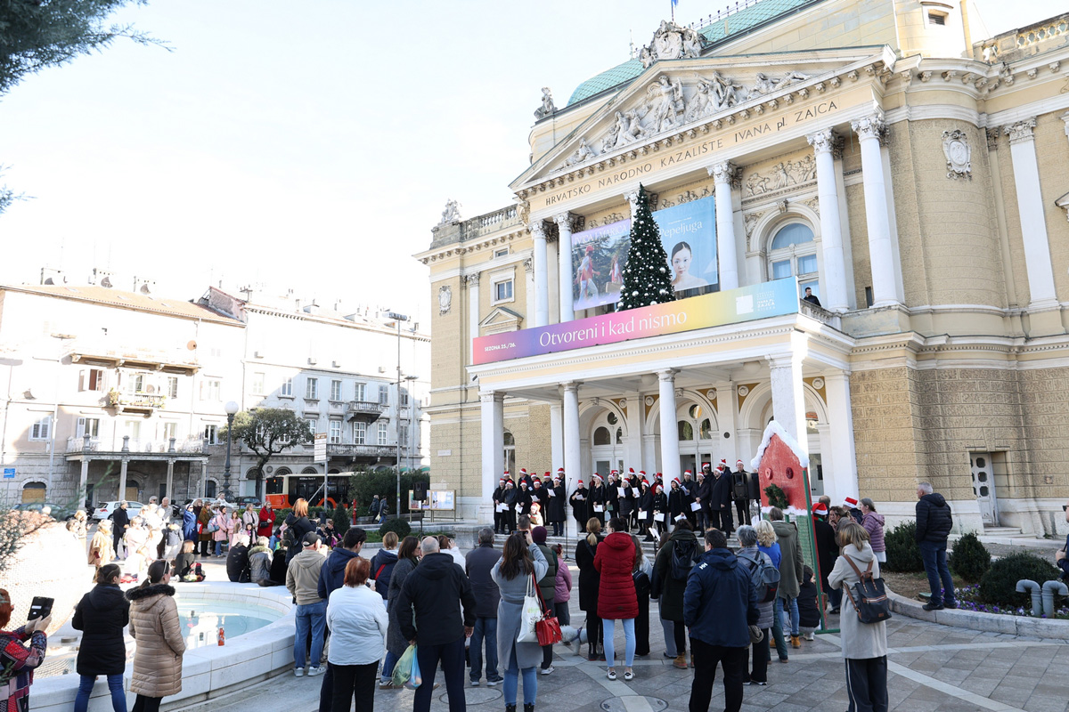 A u 11.30 sati počinje program ispred zgrade riječkog HNK koji će otvoriti plesači Marta Voinea Čavrak i Federico Rubisse izvedbom blagdanskog dueta. Riječki operni zbor i Dječji zbor „Torretta“ božićnim će pjesmama prizvati pravu blagdansku atmosferu, a glumica Anastazija Balaž pročitat će odlomak “Božiće priče”, omiljenog klasika Charlesa Dickensa.