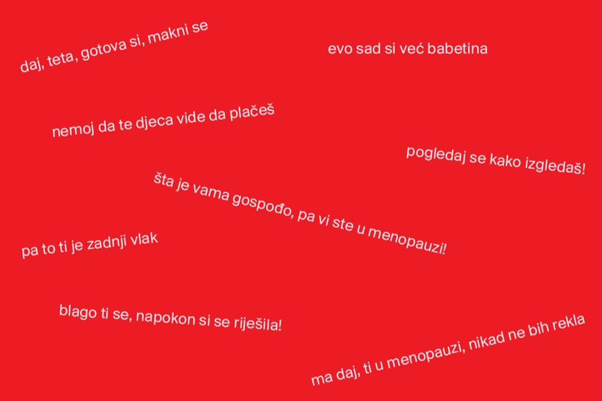 Također, segment izložbe odvija se i u vanjskom javnom prostoru kroz digitalne oglasne površine, kao gesta koja istodobno upućuje na sam rad i čini ga vidljivim izvan galerijskog konteksta. Izložba naglašava važnost afektivne i društvene dimenzije menopauze, pokazujući kako iskustva, osjećaji i razgovori mogu postati sredstvo solidarnosti i političkog djelovanja. Ovaj prostor vidljivosti i razmjene autorica širi kroz različite umjetničke formate i medije, od umjetničke knjige koja ulazi u fondove narodnih knjižnica i umjetničkog kalendara do site specific izložbenih postava i javnih intervencija, čime se tematika menopauze iz privatne i često nevidljive sfere izmješta u kolektivni i društveno prepoznatljiv kontekst.