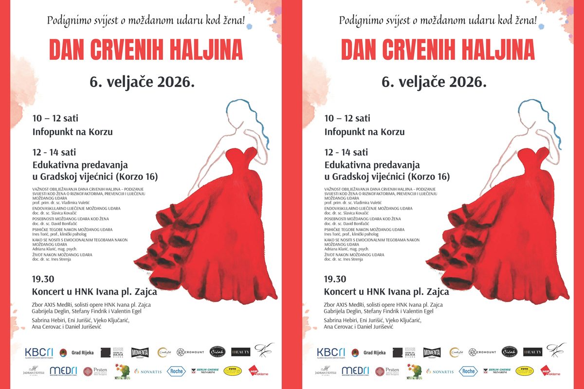 Rijeka se u petak, 6. veljače, priprema za tradicionalno obilježavanje međunarodnog Dana crvenih haljina, javnozdravstvene akcije posvećene podizanju svijesti o moždanom udaru kod žena koja okuplja struku, građane i umjetnike.